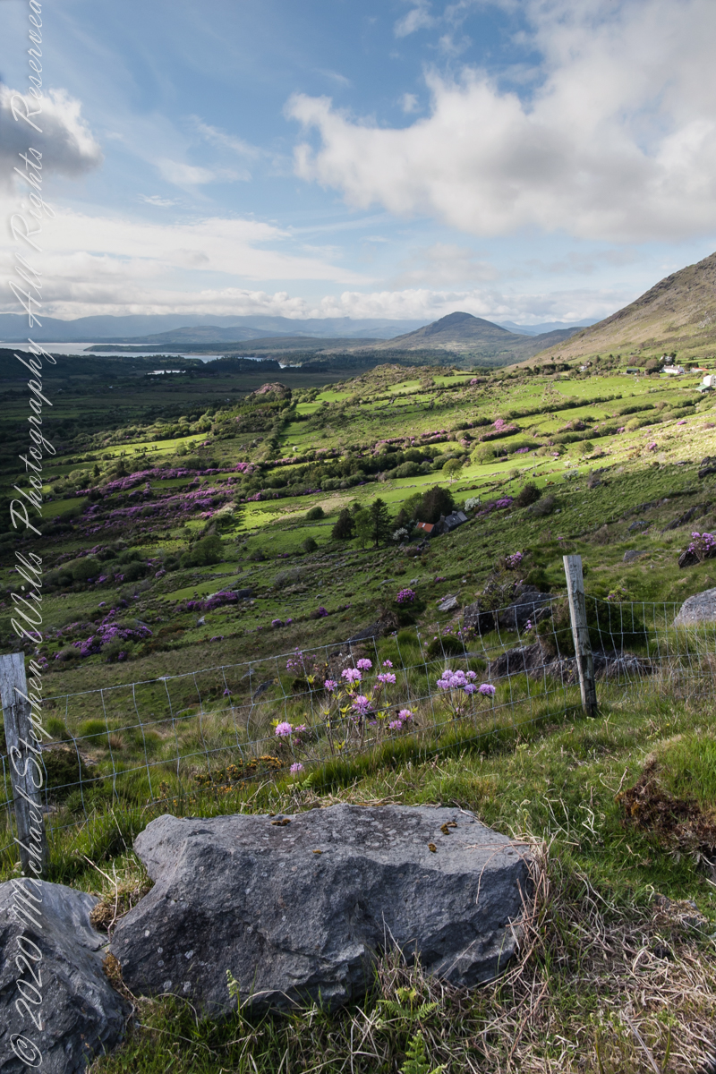 Number four of six from the Kerry County side on the descent Healy Pass, R574. Here I turn the camera on the Manfrotto studio tripod with hydrostatic ball head to the original view, a little less lit with a better leveling of the horizon.