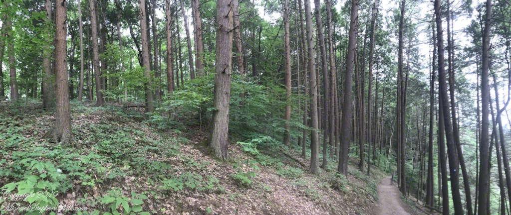 Travelling light, using IPhone captures during a 5.7 mile walk on the Gorge and South Rim Trails of Robert H. Treman New York State Park, Finger Lakes Region near Ithaca, New York. A few waterfalls and sights along the way. Distance is from the “Health” app on my phone.