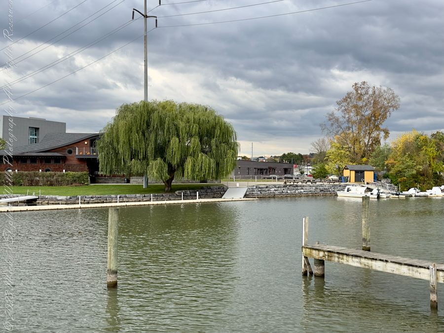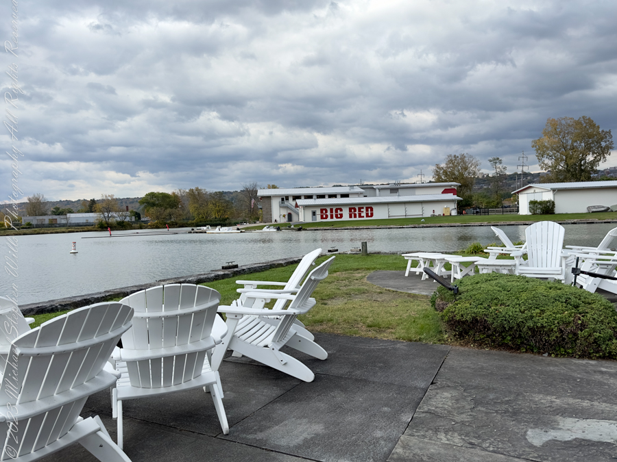 The second image, with its inviting Adirondack chairs facing the water, offers a serene vantage point that contrasts sharply with the bustling commercial thoroughfare that the Inlet once was. In place of cargo-laden vessels, the view now yields to leisure boats and the tranquil ripples of recreational pursuits. The backdrop featuring the words “BIG RED, ” a sobriquet of Cornell University, serves as a vivid reminder of the transformation from industrial hub to leisure and educational destination.