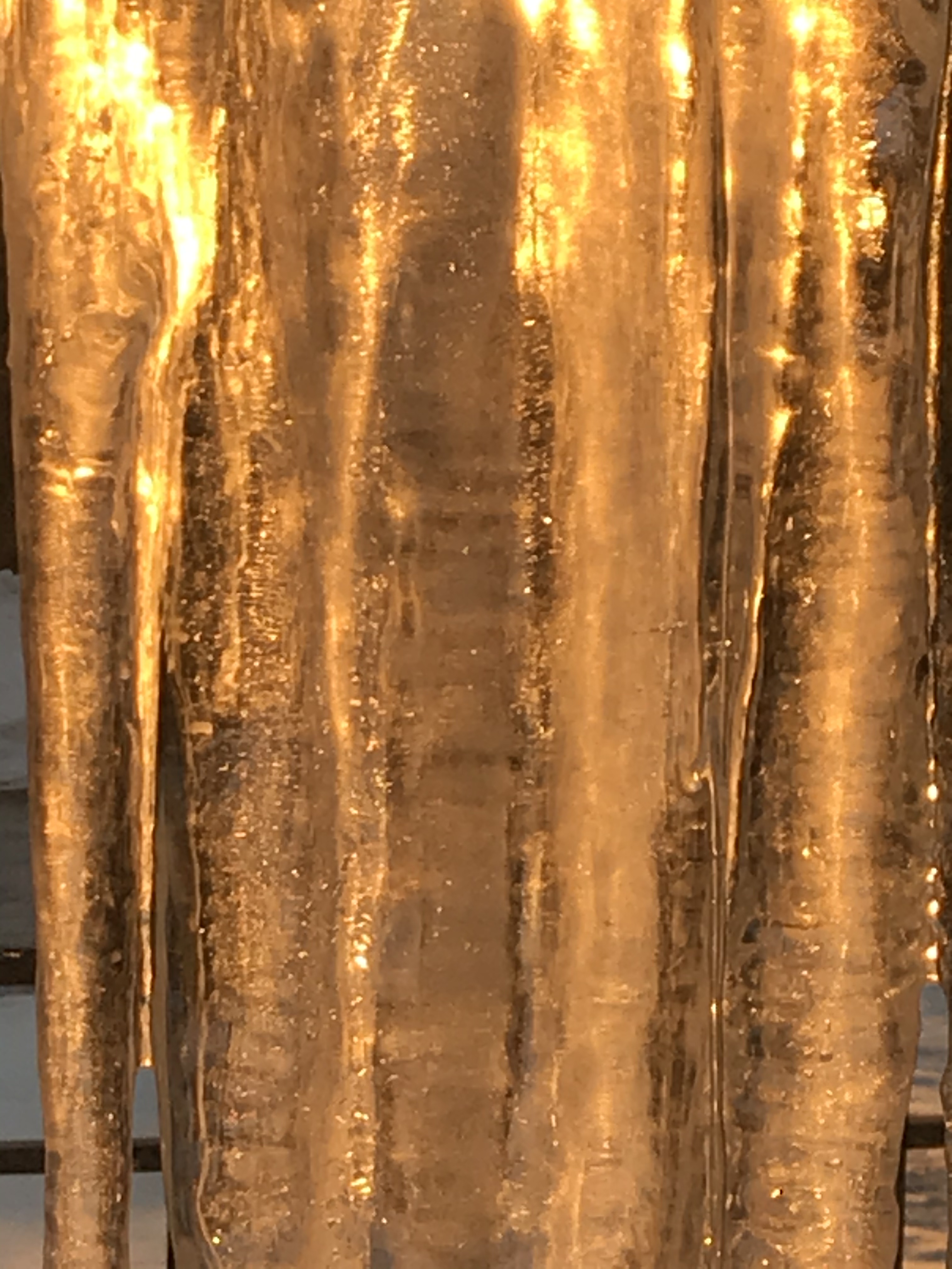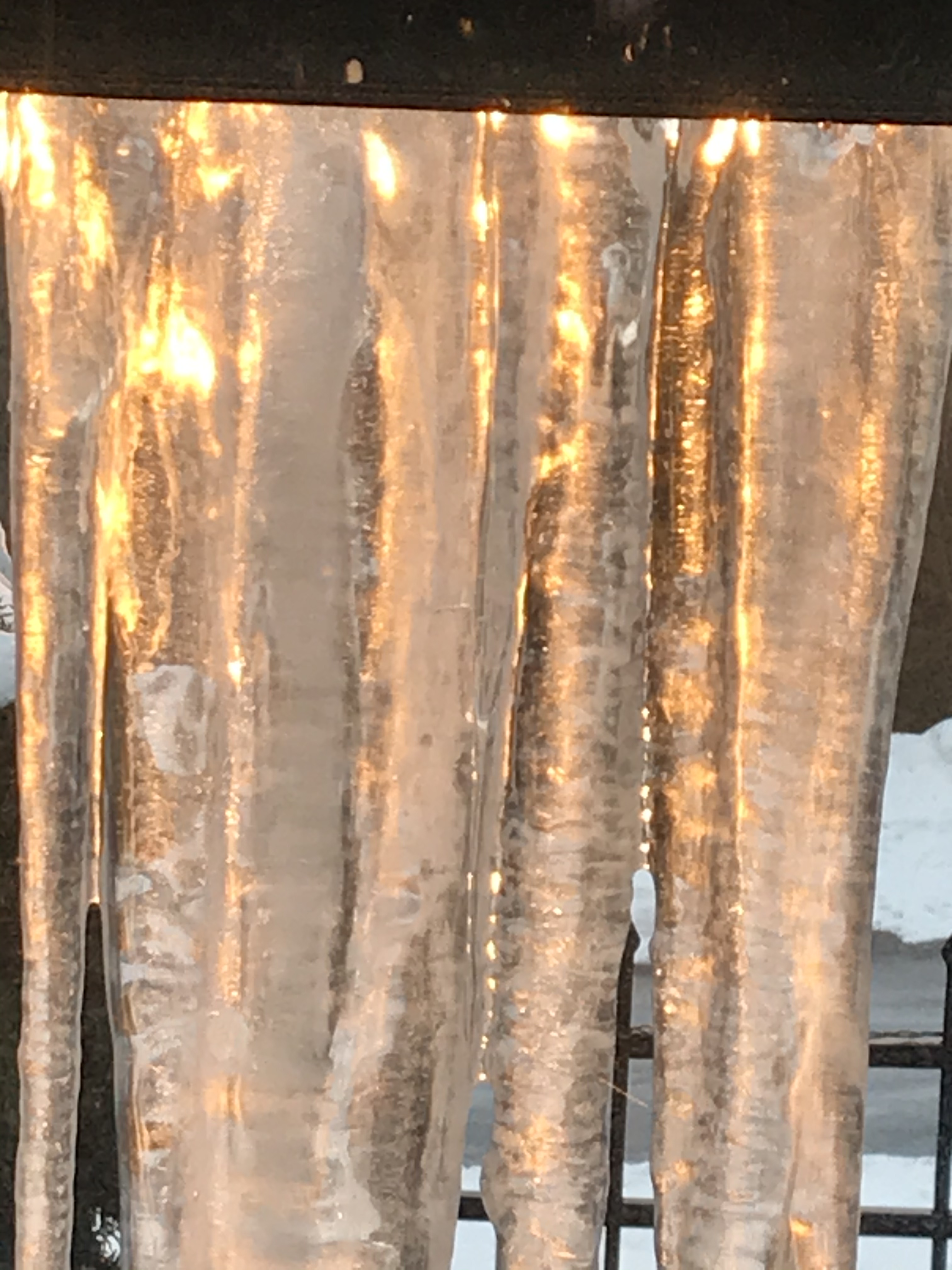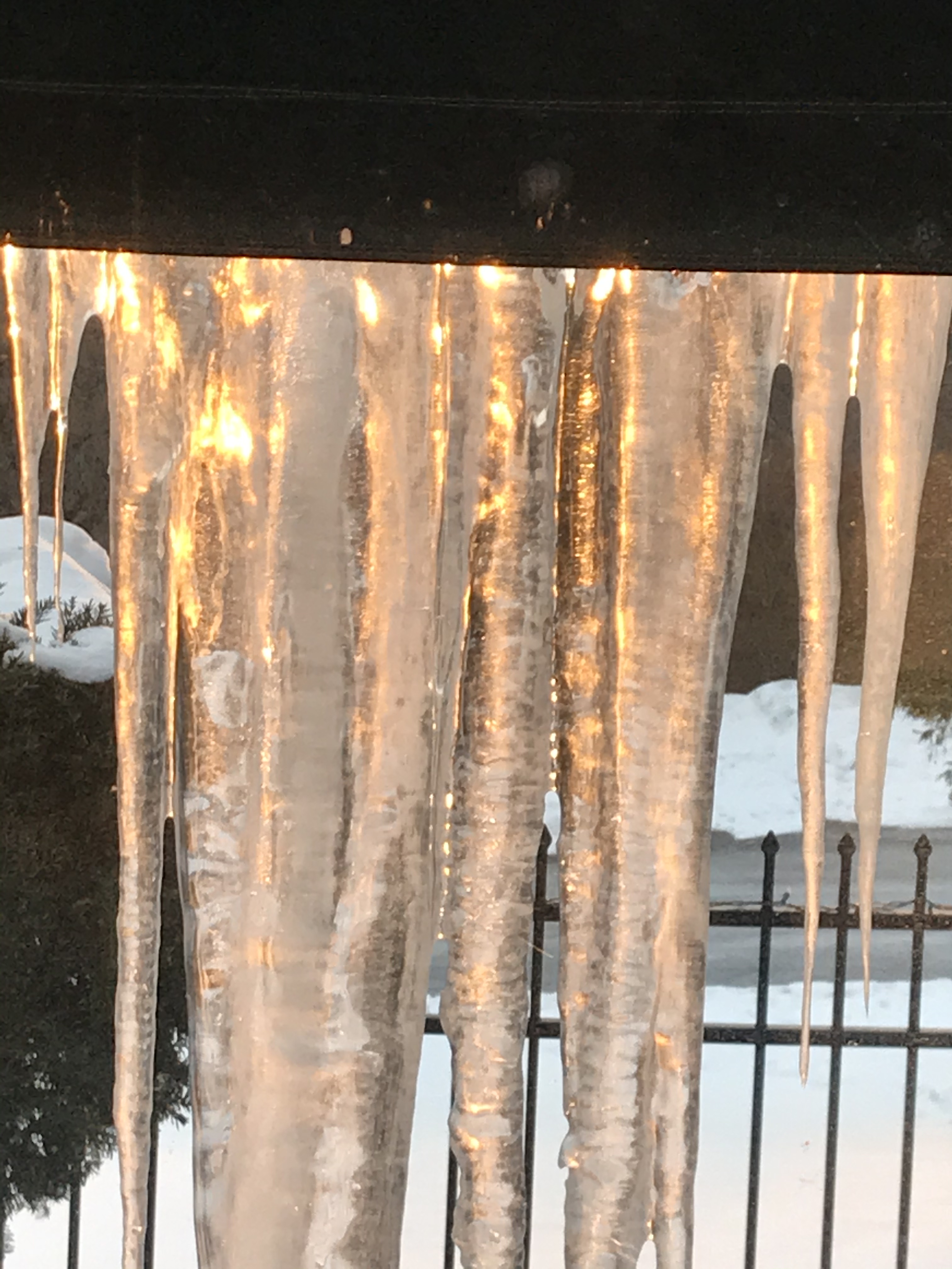 Here is the light of that dawn collected by an unusual assortment of icicles gathered from the huge accumulation of rooftop snows.