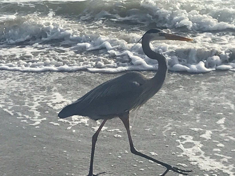 We walk the long seam where the Atlantic writes its restless script, and our beachcombing becomes a study in attention. The shore’s edge—where foam loosens shells from sand and the wind arranges salt on the tongue—draws other walkers too: grey herons, patient and arrow-straight, patrolling the surf line as if reading a language older than tides. They halt us without trying. We stand, quieted, while they work the boundary between water and land, between hunger and satisfaction.