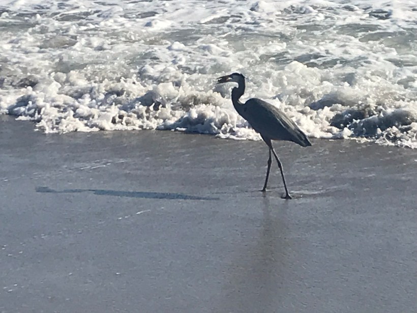 We carry a smart phone on these morning circuits, a slim stand-in for heavier glass, enough to witness without intruding. Backlit by the early sun, the herons are cut from bronze and shadow, working the luminous edge while the day composes itself behind them. In the afternoons we meet fewer of the solitary hunters when the strand belongs more to the opportunists near the thinning knots of anglers. Why the shift, we cannot say. The ocean has its schedule; so, it seems, do its readers.
