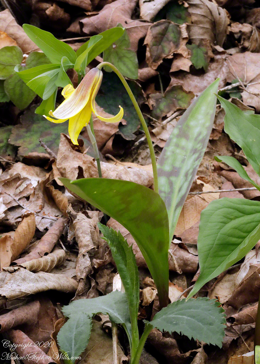 The Trout Lily (Erythronium americanum) is named for the mottled brown leaves resembling marking on trout.
