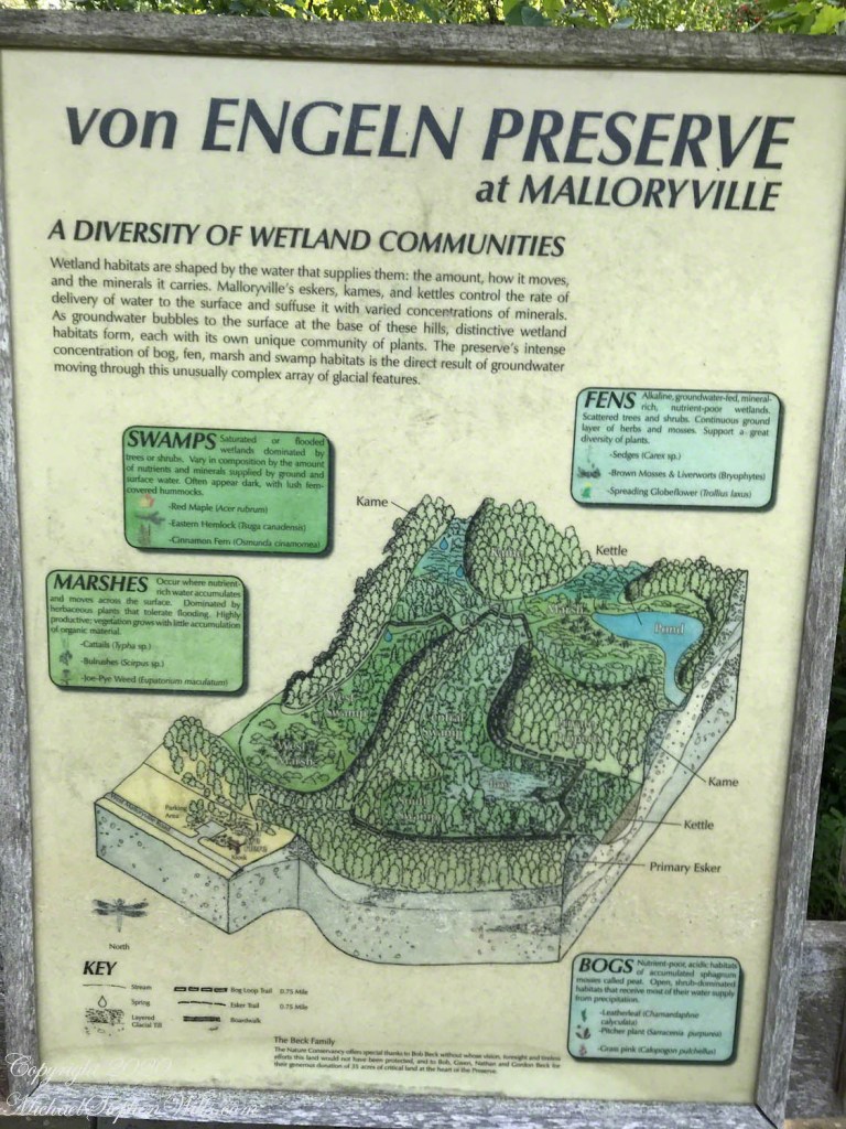 Water defines the O.D. von Engeln Preserve at Malloryville long before we see or hear it. At first, it is only a dampness in the air, a coolness at ankle level, a dark sheen between sedge tussocks. In the space of a half-hour walk, we pass through fen, bog, marsh, and swamp, each distinct, yet bound together by the same slow, persistent flow.