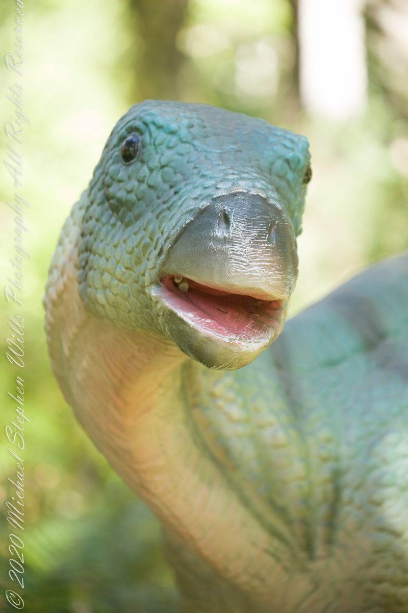 Baellynasaura was a small, bipedal, herbivorous dinosaur from Australia. Unlike today’s reptiles, its top and bottom teeth touch when chewing, allowing it to consume plants. It had a remarkably long tail, which contained over 70 vertebrae, as much as 75% of its total bodyt length. It is believed Leaellynasaura’s large eyes were used to see during the long nights that Australia experienced. Recent studies, however, show that these specimens discovered are juveniles; hence, like puppies and kittens, their eyes are large regardless of where they are found in the world.