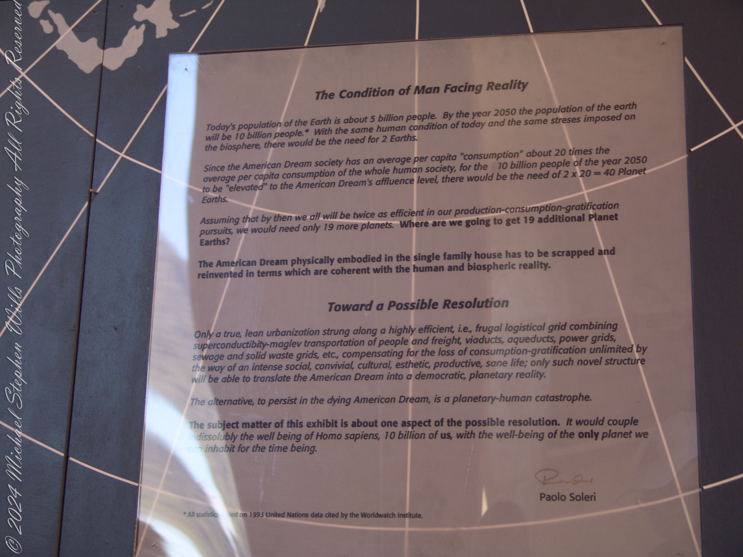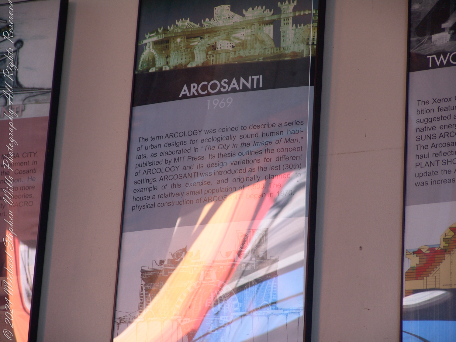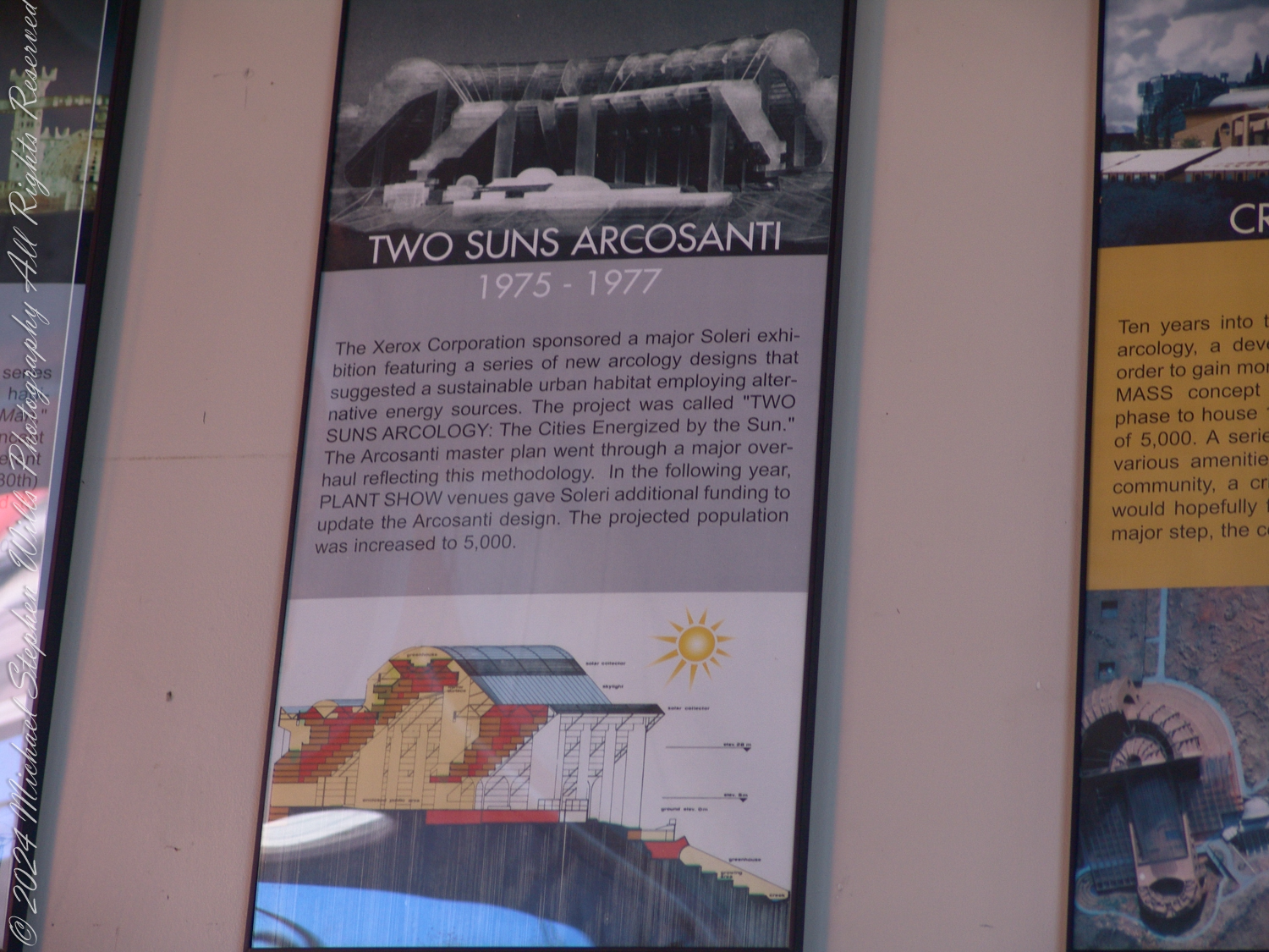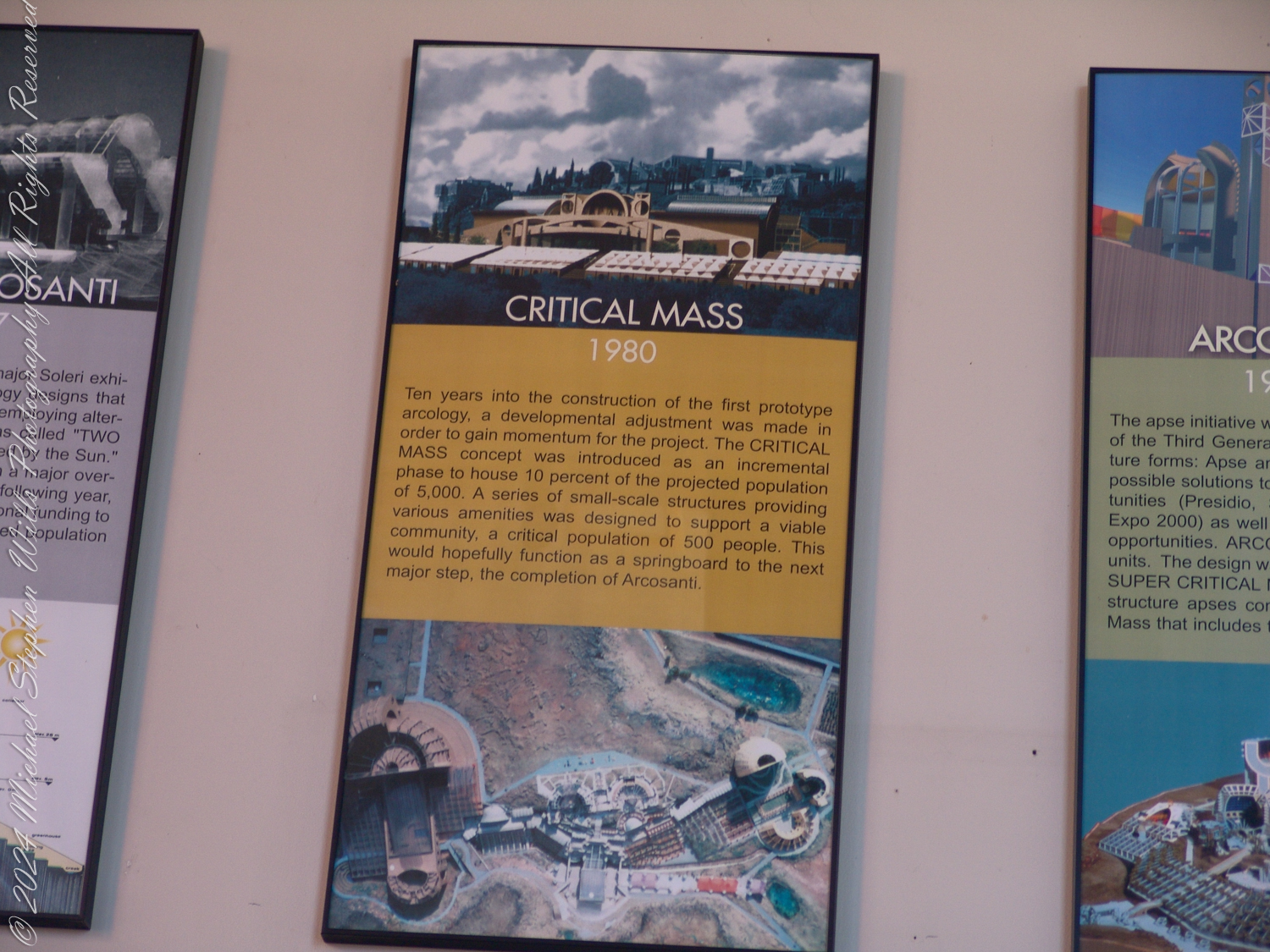 The accompanying photographs are a presentation of the history of Arcology from Arcosanti signage
