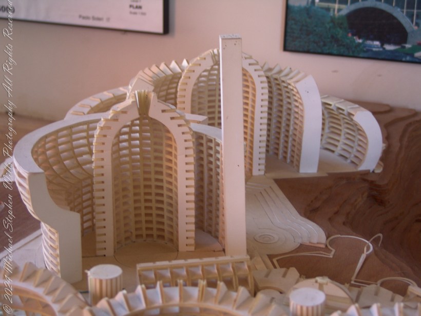 As I circled the table, I tried to imagine life within these walls. Here was the apse architecture that Soleri had championed—a structural form both futuristic and deeply rooted in the land. Its curves seemed to reject the cold rigidity of modern urbanity, embracing instead a harmonious fluidity. What would it feel like to wake up in one of these units, to look out through those sweeping arches and see the desert alive with light and shadow?