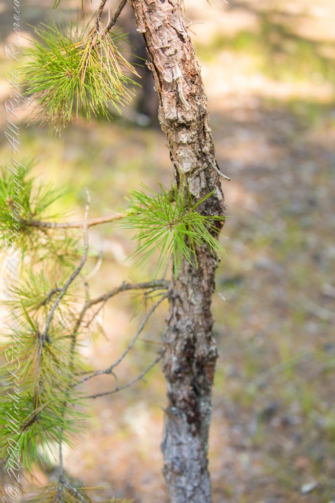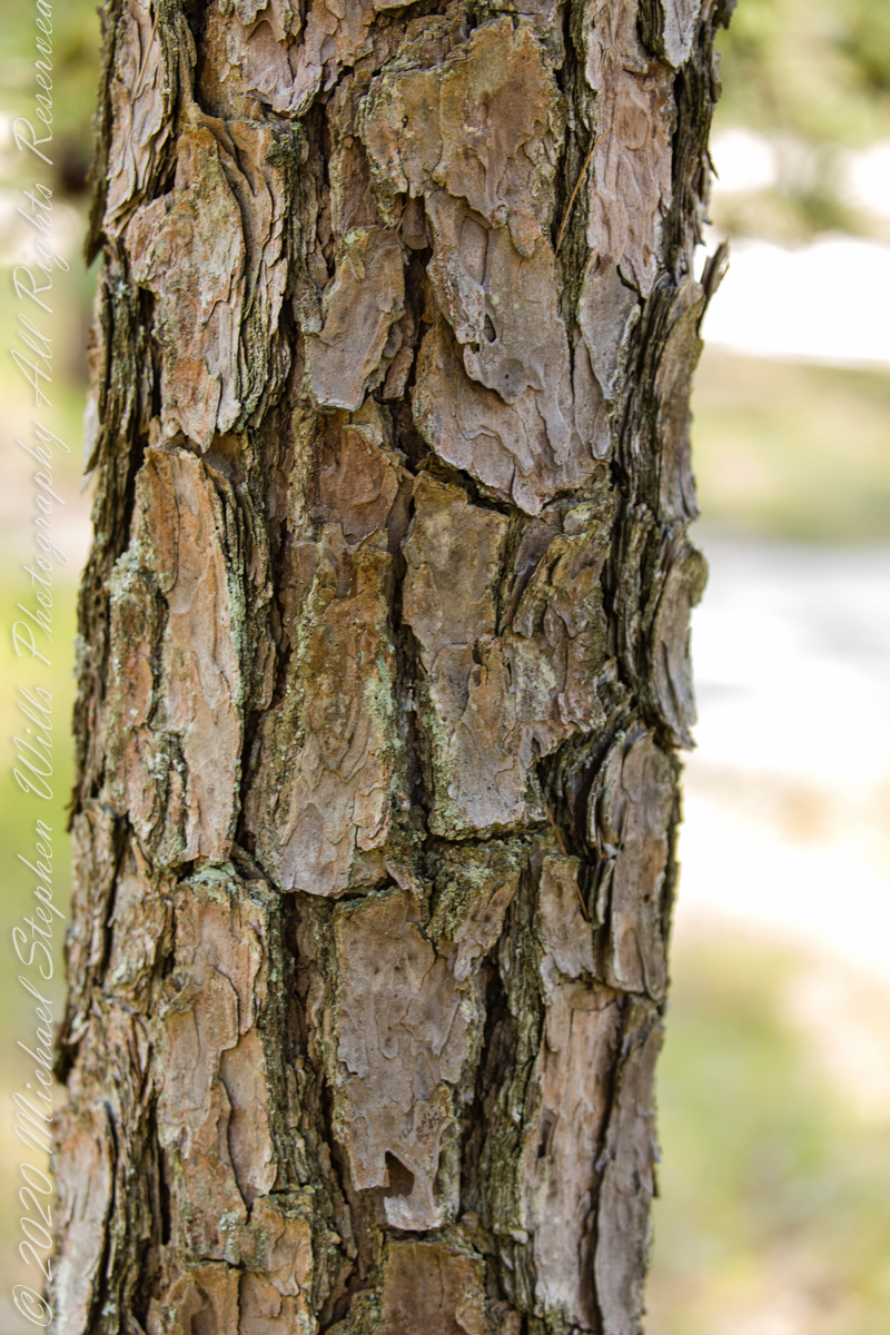 A mature Pitch Pine has bark of large, thick, irregular plates, adapted to survive forest first, similar to another member of the Pinus genera, the Ponderosa Pine.