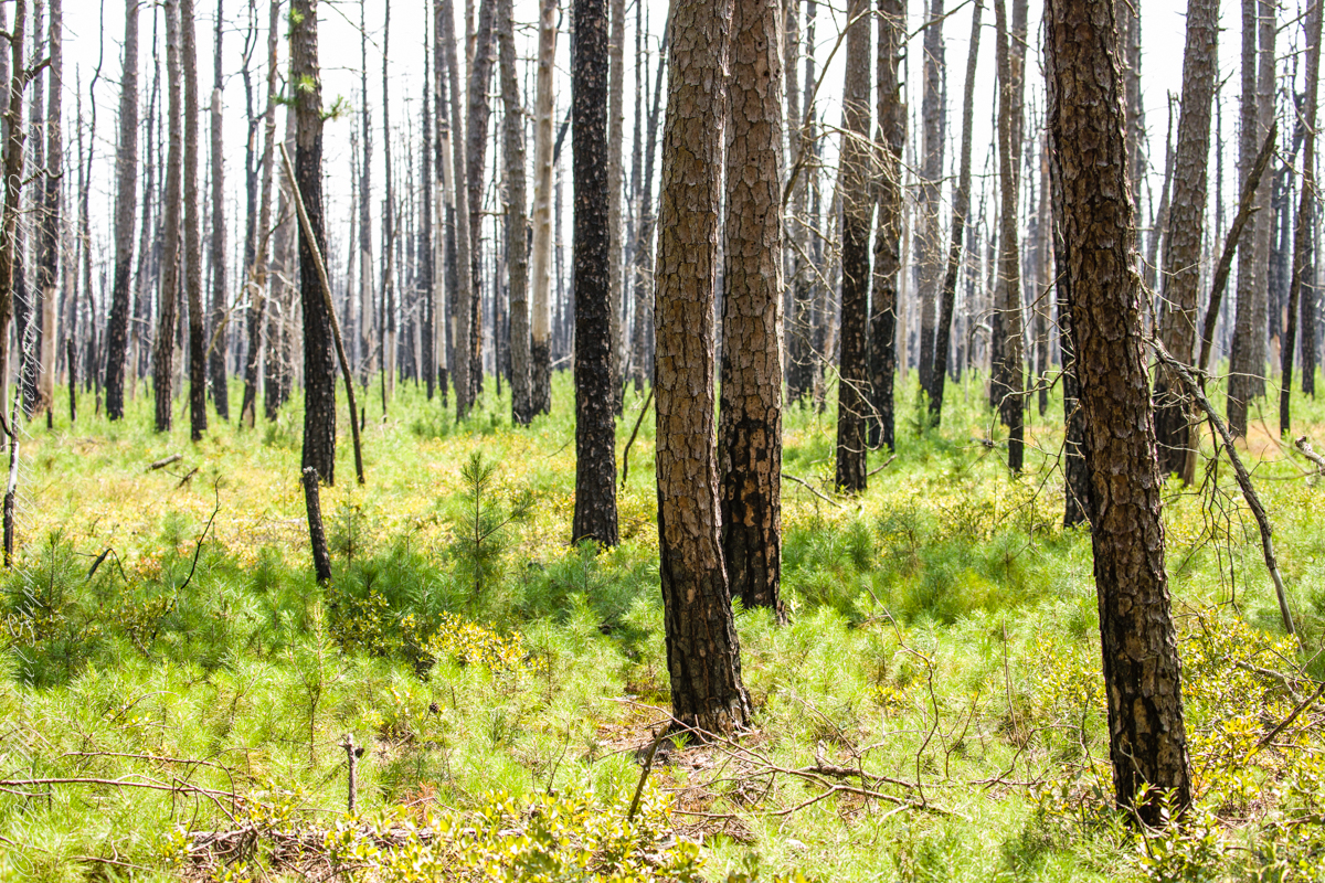 The pitch pine is irregular in shape, in these forests a mature tree typically lives through multiple cycles of fire and regrowth.
