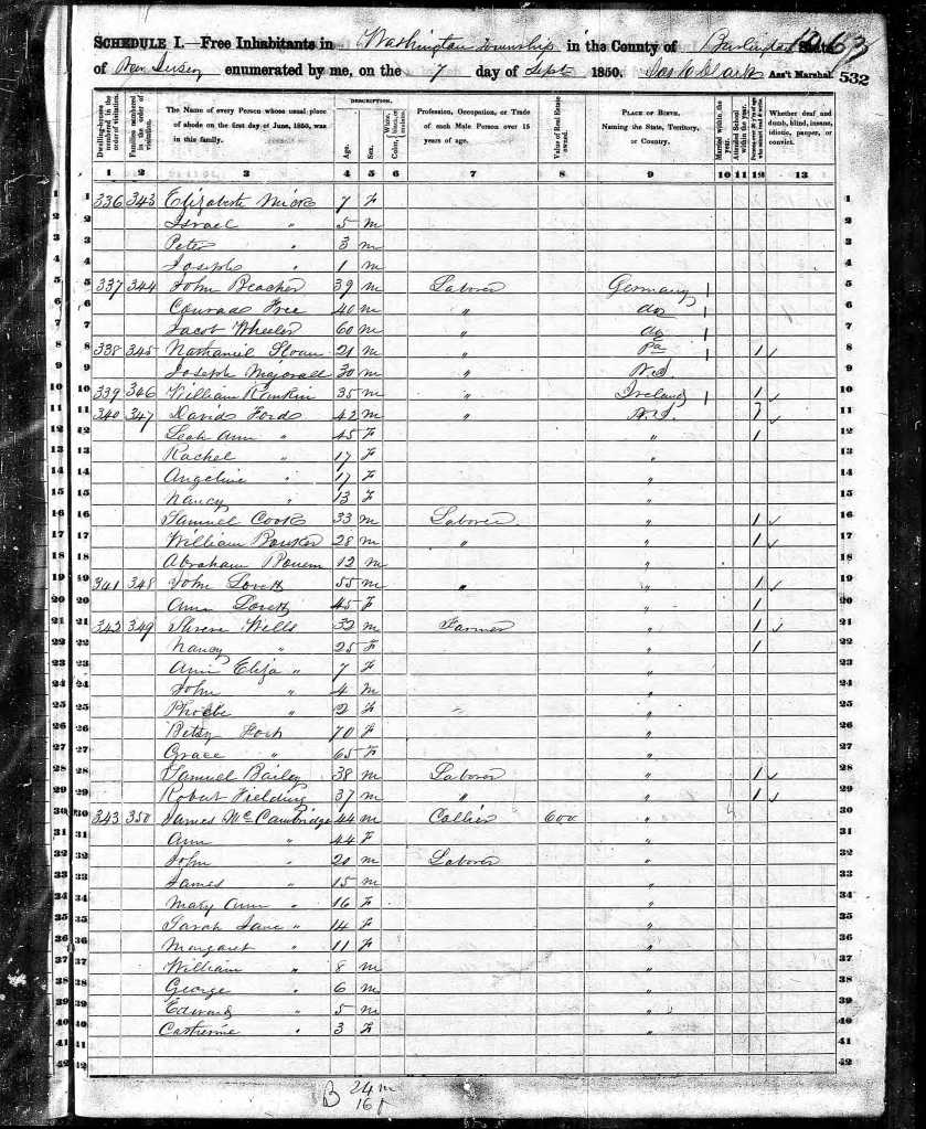 When I was a young adult Mom told me Grandfather Wills was buried in the Bronx. James Edward Wills died when my father was very young and they were poor, living in tenements on the upper West Side of Manhattan April 1916.. Looking through Dad’s papers after both he and Mom were gone, I found the grave receipt: “Saint Raymond’s Cemetery, Westchester, New York.” James Wills, born April 1877, the youngest of six children of George Wills and Margaret McCambridge, who were 43 and 38, their place of residence two years later cited in the 1880 Federal Census as Shamong, New Jersey. Today, Shamong Township is part of New Jersey Pinelands National Reserve. Atsion, the Iron Furnace town where James’ Grandmother Ann McCambridge (nee Milley) worked as a cook, is in Shamong Township.