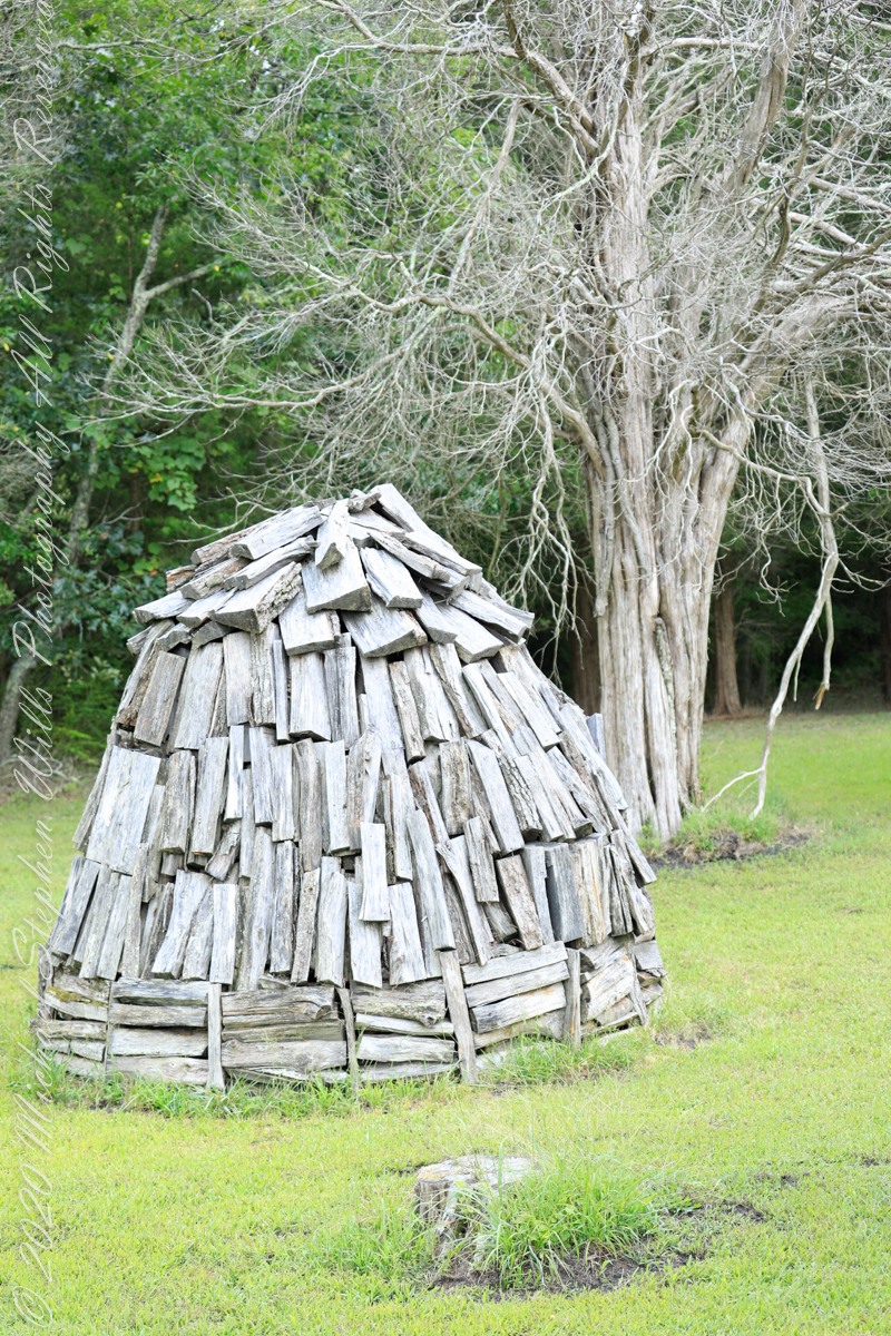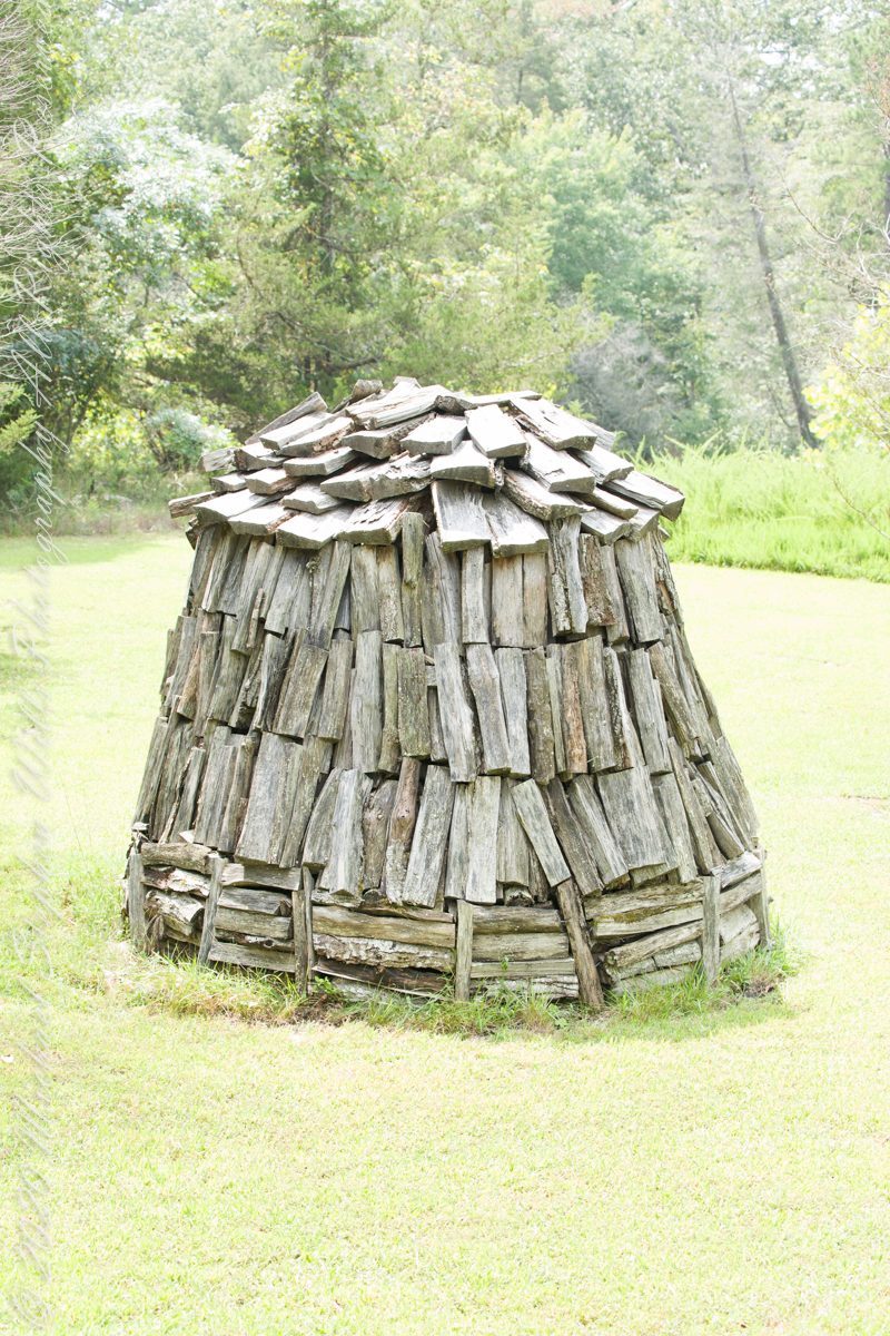 Here my exploration of Wharton State Forest, Pitch Pine Forest III, branches to the genealogical exploration of this landscape as my sister, Theresa and I, proceed along the humped, pitted sand road Goodwater through the wilderness to emerge in Batsto Village, a recreation of lives that touched my great great grandparents, James and Ann McCambridge among them. Ann saved money earned as a cook for Atsion furnace, the historical site at the start of the road to Quaker Bridge. Her husband James worked as a collier, supplying fuel for the iron furnaces at Atsion and Batsto, among other enterprises. During our Batsto Village visit we found these reproductions of charcoal clamps.