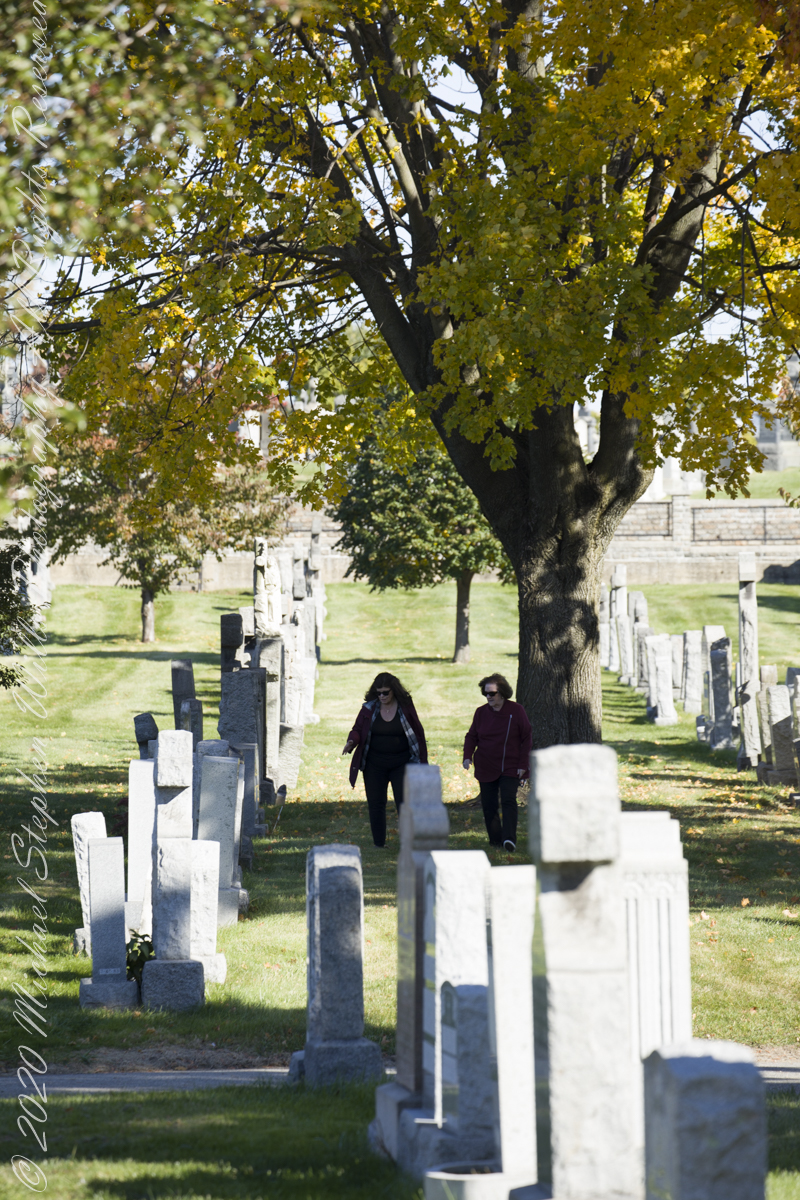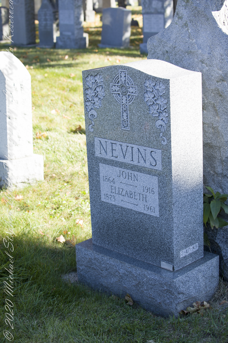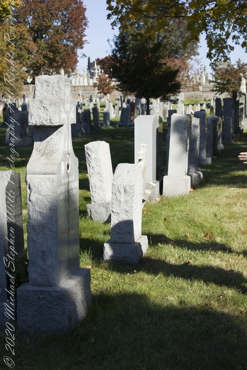 James Edward Wills unmarked grave, Section 7, Range (Row) 41, Grave 82, Old Saint Raymond’s Cemetery, Balcom Avenue, Schuylerville, Bronx, New York. Wednesday, November 10, 2021. Here we are facing south / southeast into Section 7, James Wills’ unmarked grave is to the left and just behind Nevins headstone (Row 40, Grave 83).