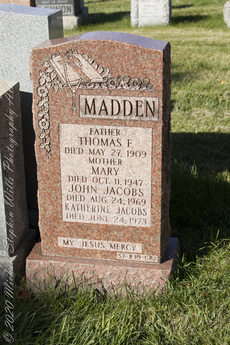 Finding and researching the grave receipt is what began my adventures in genealogy. What was, in 1916, Westchester is now the Schuylerville section of Bronx county, a borough of New York City. Saint Raymond’s Parish, still going strong, acquired more consecrated land for burials with now an “Old” and “New” cemetery separated by the confluence of interstates 95, 295, 678 including the approaches to the Whitestone and Throgs Neck Bridges, the superstructures of which are visible from the “Old” cemetery.