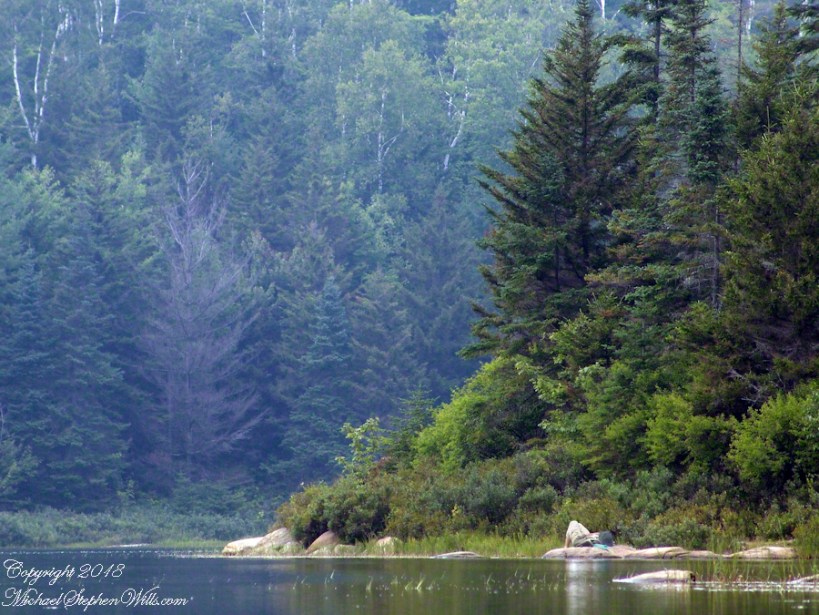 Looking north across Peaked Mountain Pond from the west shore shortly after dawn.