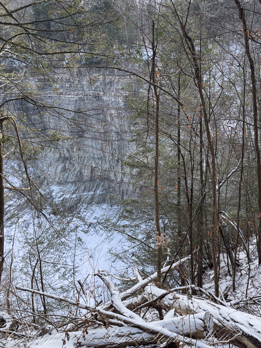 From the overlook, the gorge opens like a vast stone book, its pages written in shale and time. Taughannock Falls drops away in the distance, not so much seen as felt—its presence announced by scale and gravity. Even before stepping onto the trail, the walk establishes its rhythm: pause, look, breathe. Winter insists on this slower tempo. Ice dictates caution, and caution invites attention.