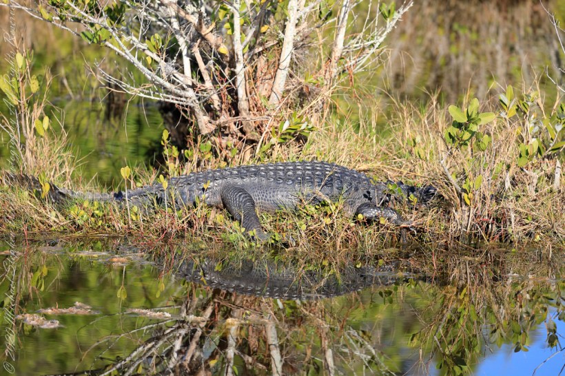 Here the Alligator is the apex predator that will attack and eat the unwary tourist. This eight-foot monster, resting on a hummock 20 feet from the road, absorbed only sun. In town, it is on the menu.