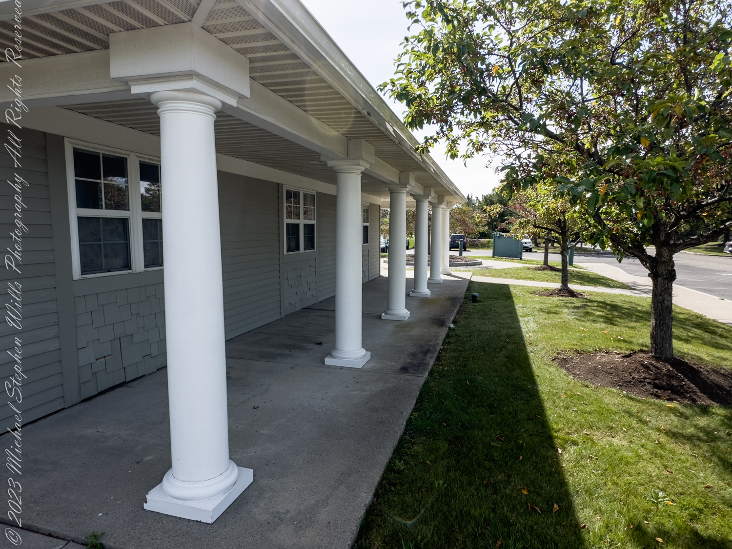 Standing in the cool autumn sunlight, I find myself pacing beneath the sturdy Doric columns of this medical campus in Northeast Ithaca, waiting as Pam undergoes another session of physical therapy. The simplicity of the columns strikes me—clean, white, and unadorned. They hold up the building with a kind of timeless grace, a quiet reflection of ancient design.