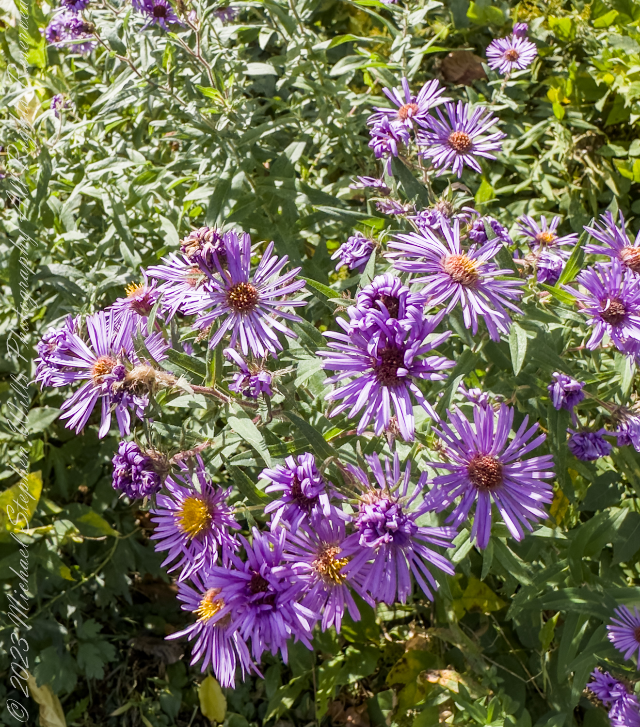 The name Aster comes from the Ancient Greek meaning “star”, referring to the shape of the flower head. ‘Aster’ species are used as food plants by the larvae of a number of Lepidoptera species. These asters grew wild on an otherwise landscaped medical campus. Found on an eaqrly autumn morning near 10 Brentwood Drive, Ithaca, Tompkins County, New York State