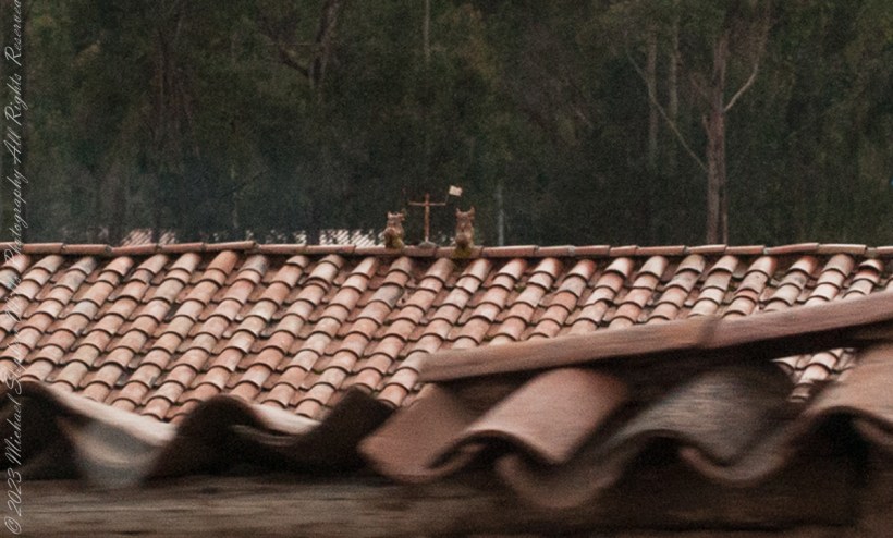 A couple of ceramic Bulls stand on the middle of most rooftops in Cuzco where they stand as if on a hilltop looking out on the rolling, downward-sloping pastures of orange tiles. This powerful image is one of good fortune and protection for the house and the families that inhabit it.