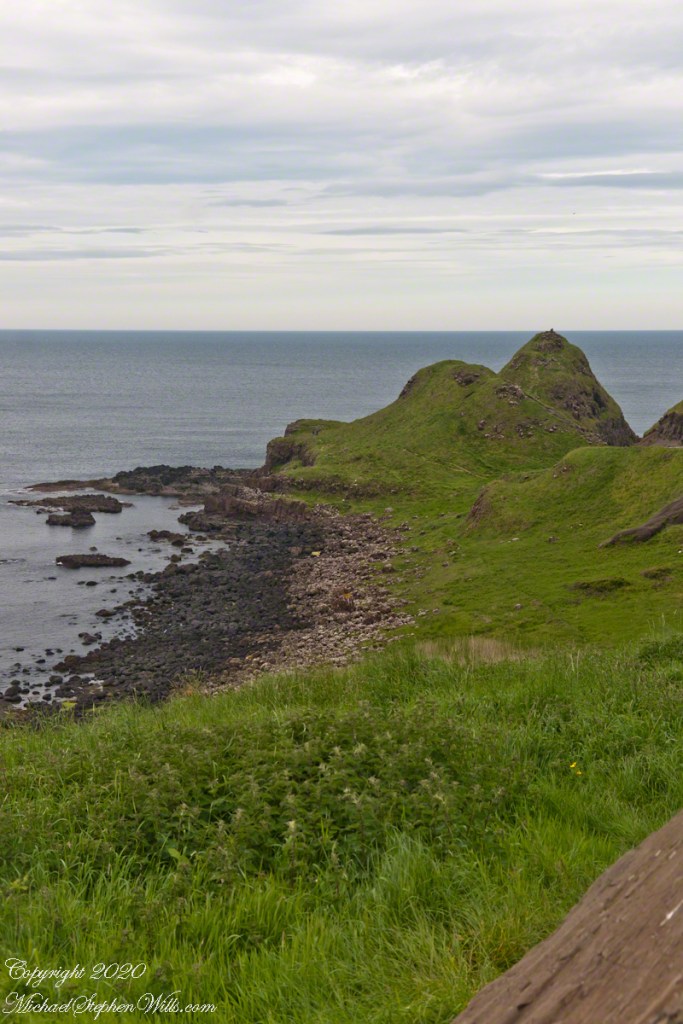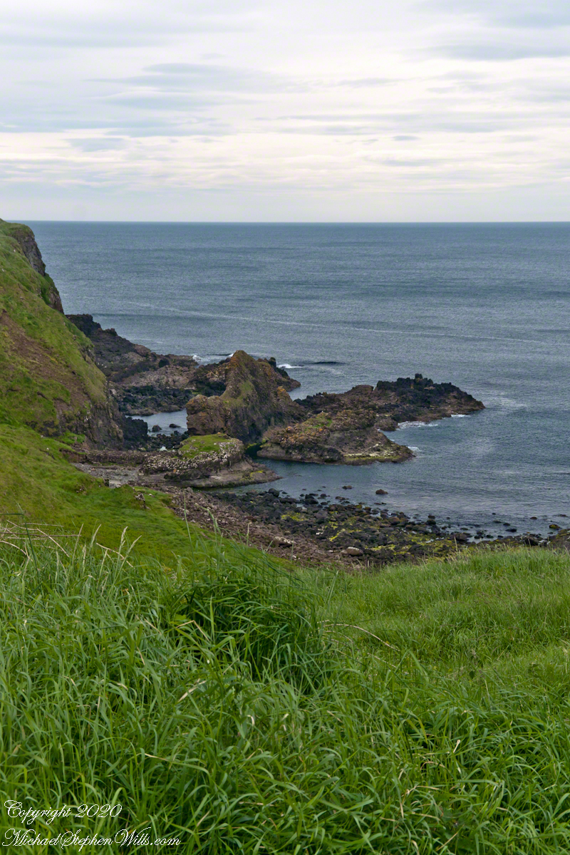 Here it is formed from iron rich basalt laid down well before the upper layers of the magma plateau. It takes eons to weather and oxidize the iron of basalt, transforming it to the brick red of laterite, yet the rocks above it are still dark. The process happens in warmer climates with alternating cycles of rain and drought, for Ireland this was when the land was much farther south than today.