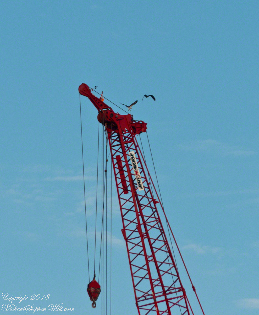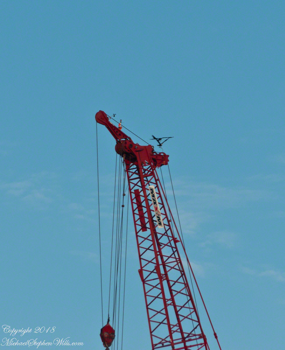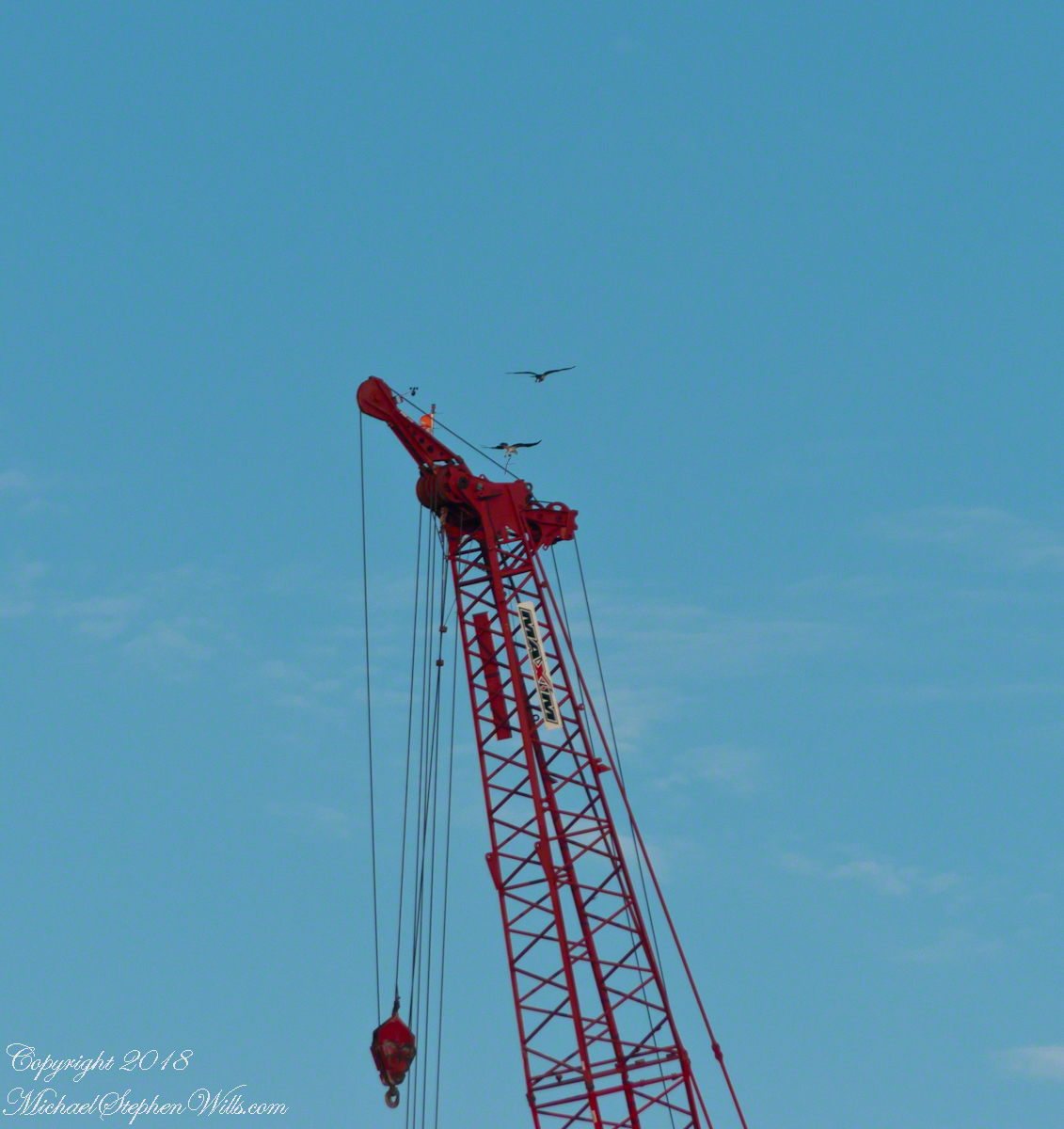 The two were flying around the crane and it is beyond imagination they’d be successful building on an actively used crane. Would construction come to a halt until the nest was abandoned? I wonder.