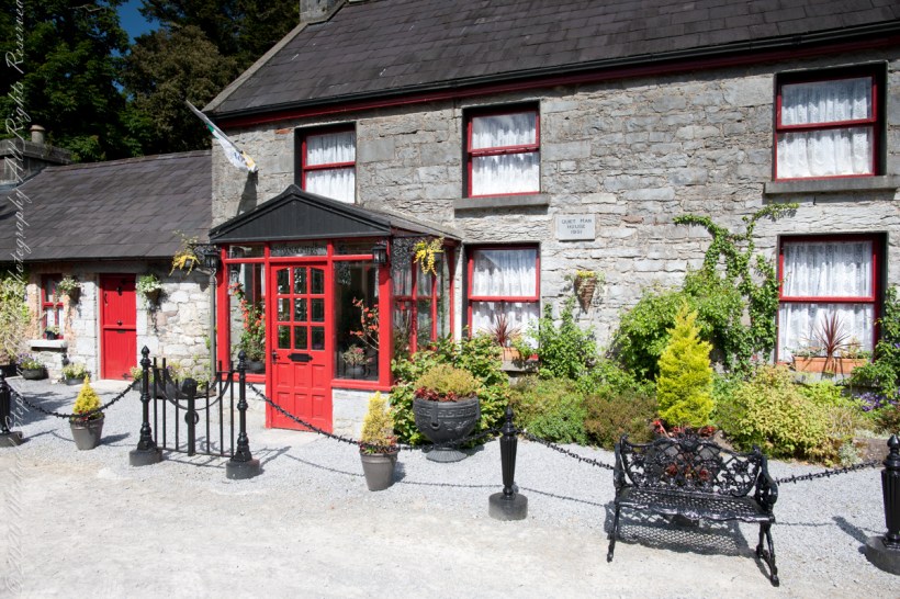 In this photograph the glass etching on entrance, identifying the home, is clearer. Also note the plaque: “Quiet Man House 1951.” Is the plaque wrong? No, while 1952 was the world-wide film release year, filming commenced on June 7, 1951.