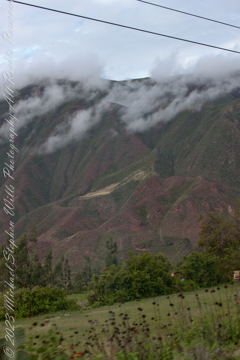 After passing Toronto Ruins, the train rounded a curve into the Amazonian rainforest. It was, frankly, boring, oppressive to proceed with greenery on either side blocking even the Sacred Valley walls rising on either side of the tracks. Thank goodness for the large roof viewing windows. I captured this photograph of the Intipata ruins on Machu Picchu peak by looking backwards through the roof window.