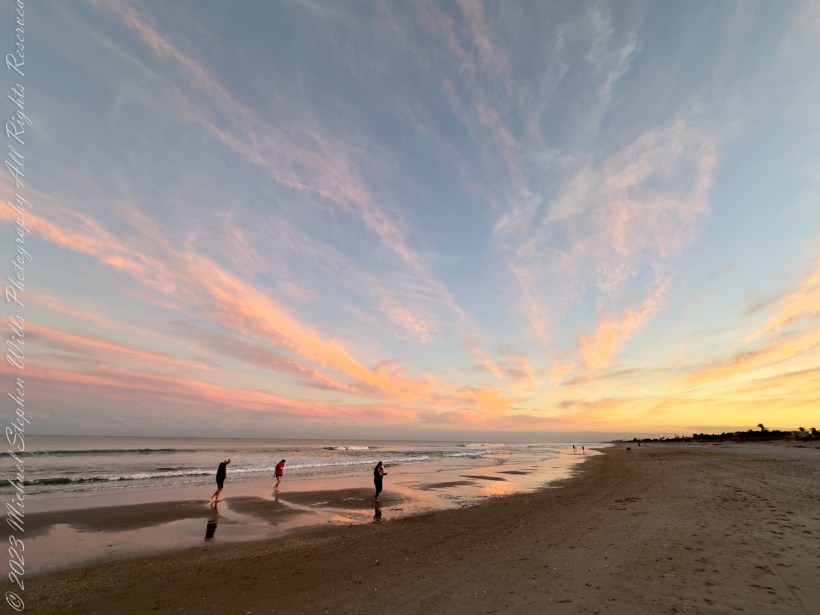 We carry a smart phone on these morning circuits, a slim stand-in for heavier glass, enough to witness without intruding. Backlit by the early sun, the herons are cut from bronze and shadow, working the luminous edge while the day composes itself behind them. In the afternoons we meet fewer of the solitary hunters when the strand belongs more to the opportunists near the thinning knots of anglers. Why the shift, we cannot say. The ocean has its schedule; so, it seems, do its readers.