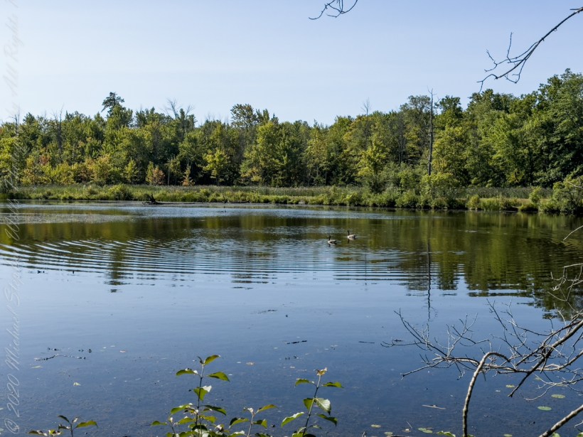 Thursday last, grandsons Sam and Rory and I visited Sapsucker Woods, enjoying a late summer morning. From the north side on Wilson Trail, these Canada geese landed on the pond.