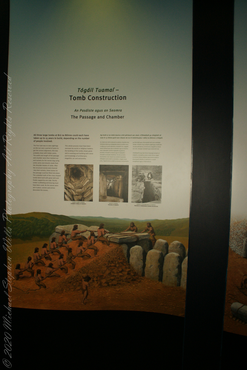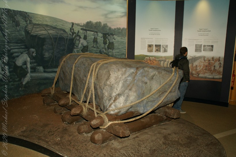 Brú na Bóinne Visitor Center display of envisioned technique for moving heavy stones during construction of Newgrange.