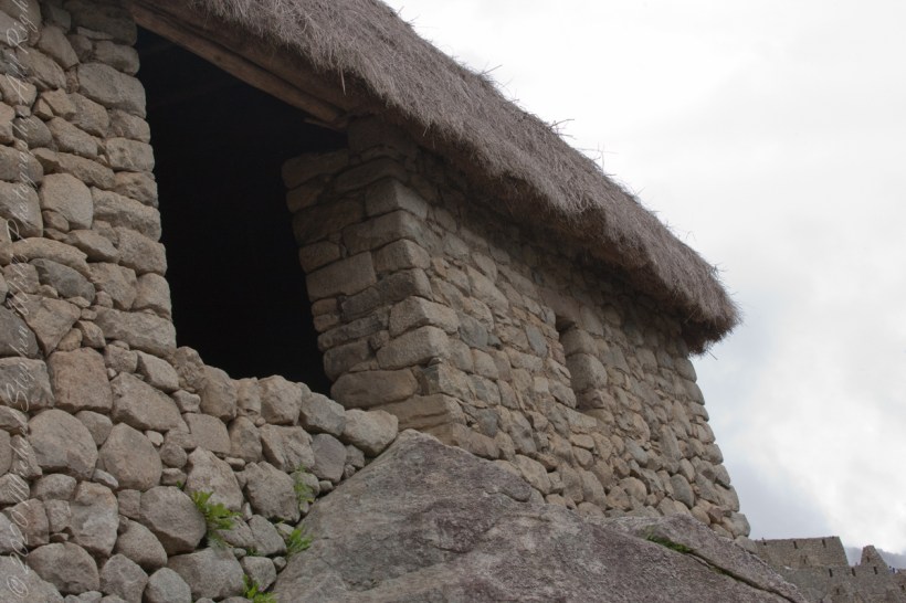 The Guardhouse also known as the Caretakers Hut was a thatched roofed building constructed from crude stones and featured 3 walls and one open long side. The Guardhouse was a building used by soldiers who guarded two main entrances to Machu Picchu.