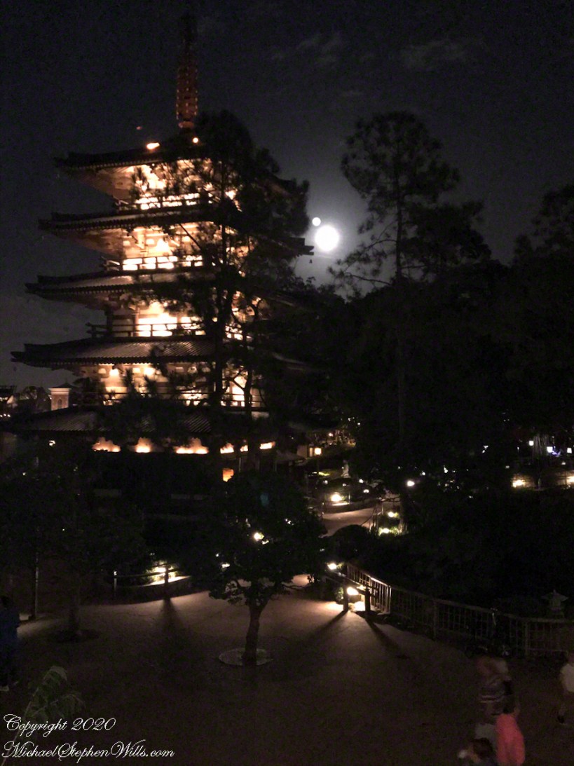These few photographs and one video of the Japan Pavilion exemplify this effect. We were blessed with a full moon.