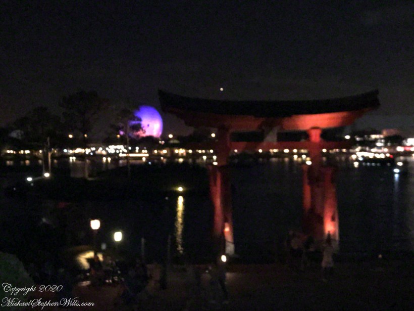 We found the “FastPass” venue lacking, as there were many structures in the line of sight, as you can see from the IPhone 7 videos in this post. In retrospect, the area in front of the Canada Pavilion was open and might be a better location — when Epcot reopens, you’d need to get their early to grab a space.