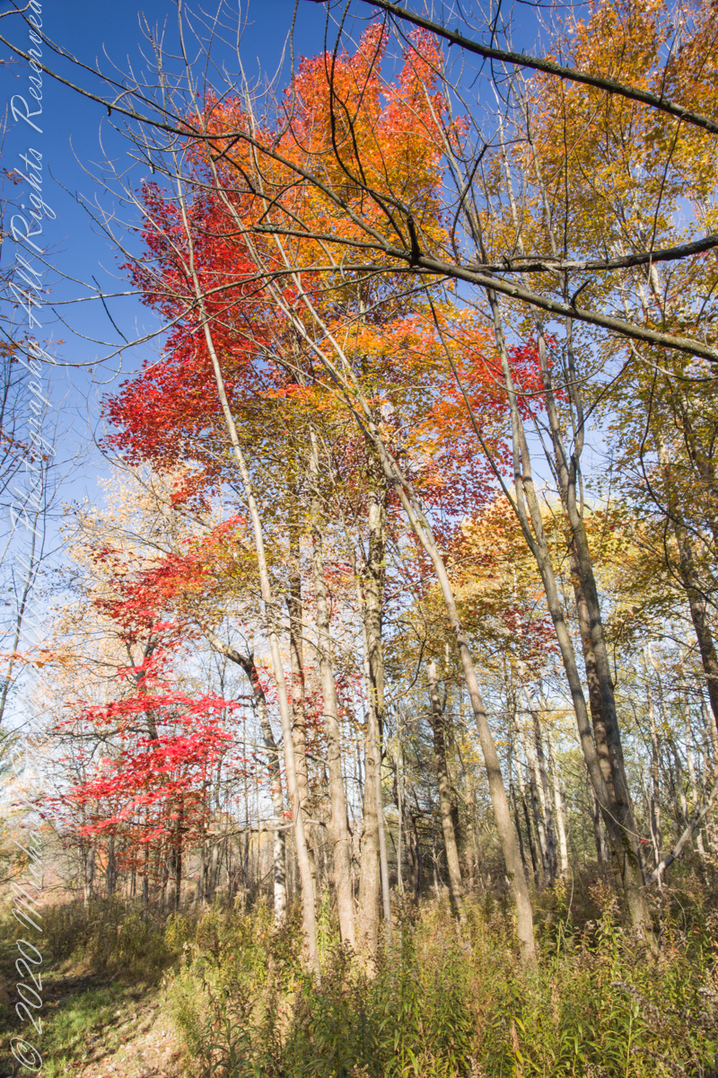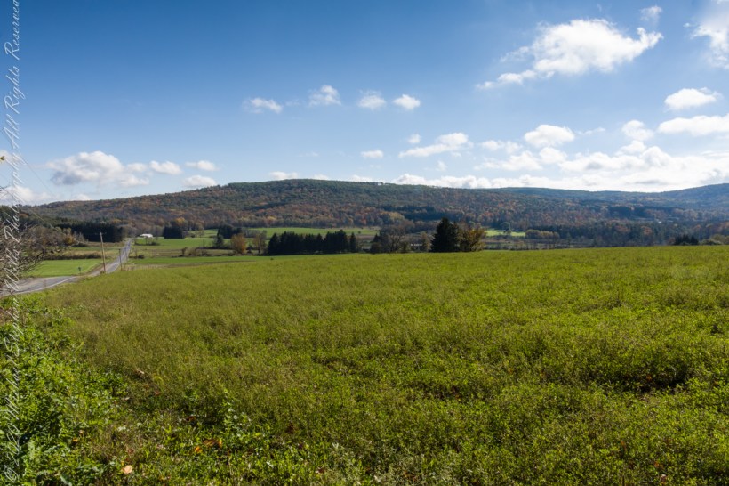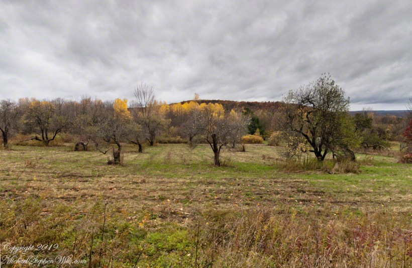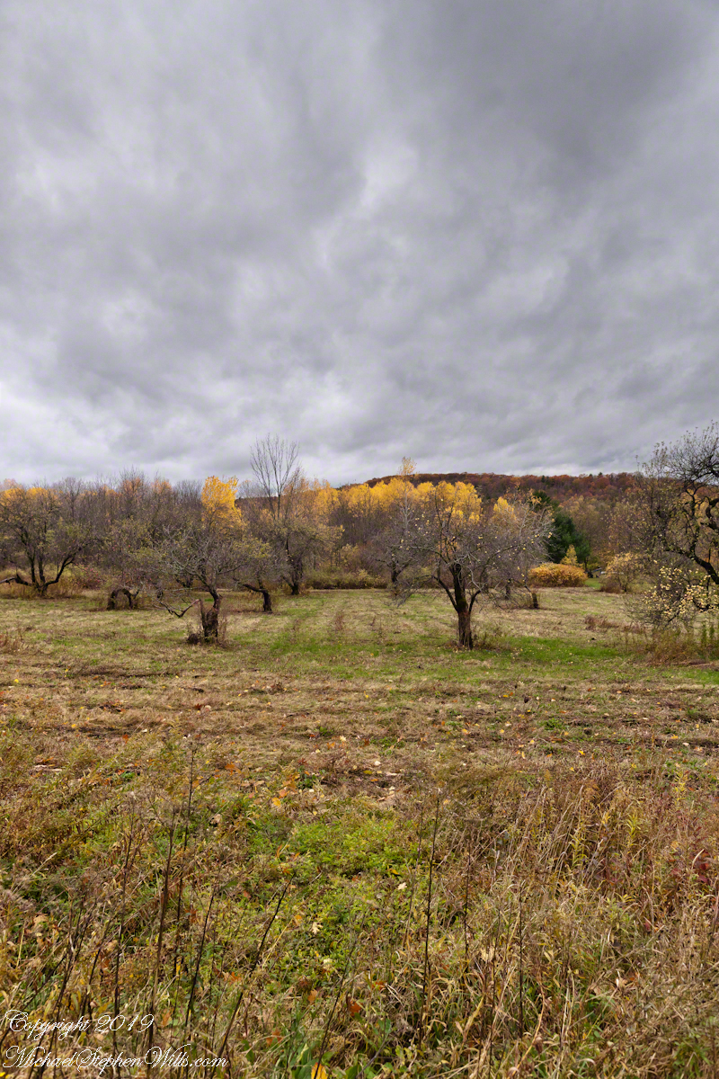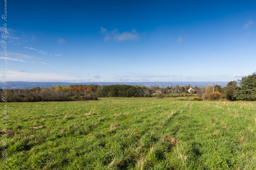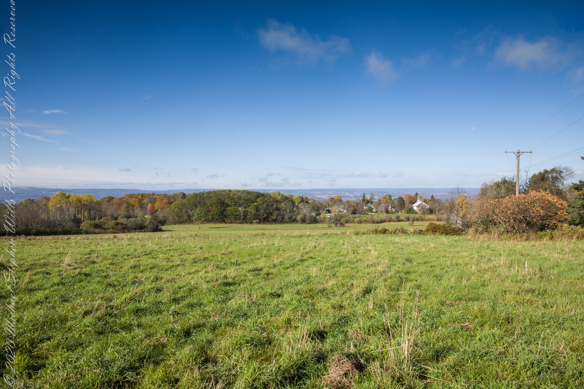 An abandoned church converted to Community Center is the distant steeple, marking the hamlet of Logan. I played a bit with the vista, moving forward and across, forgoing temptation to bring the autumn foliage front and center as this was private pasture, was 50 feet in as it was.