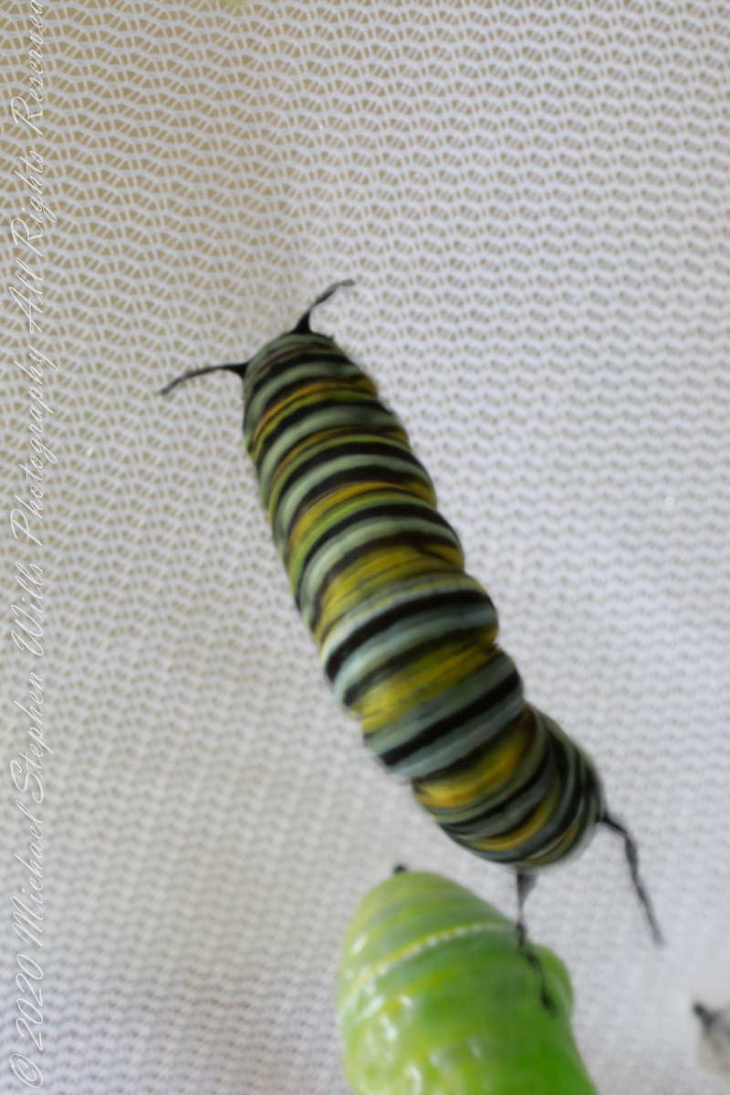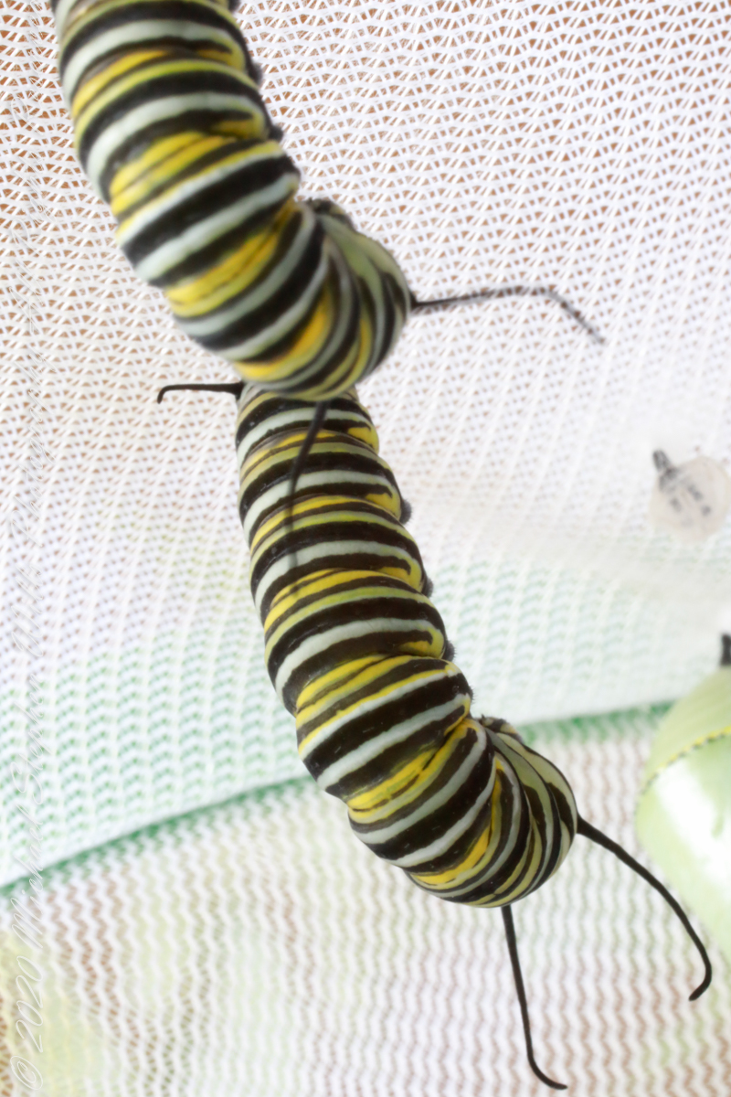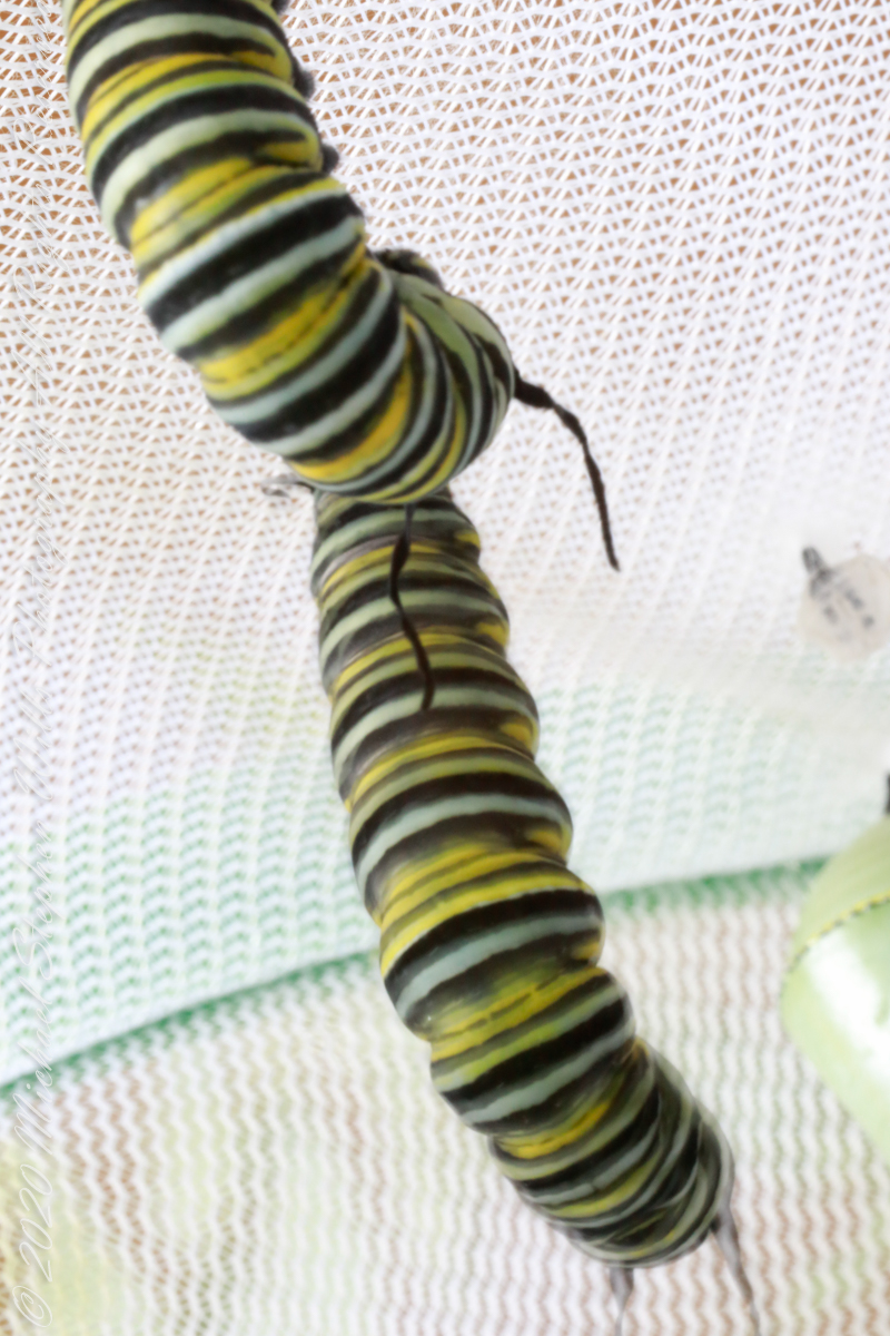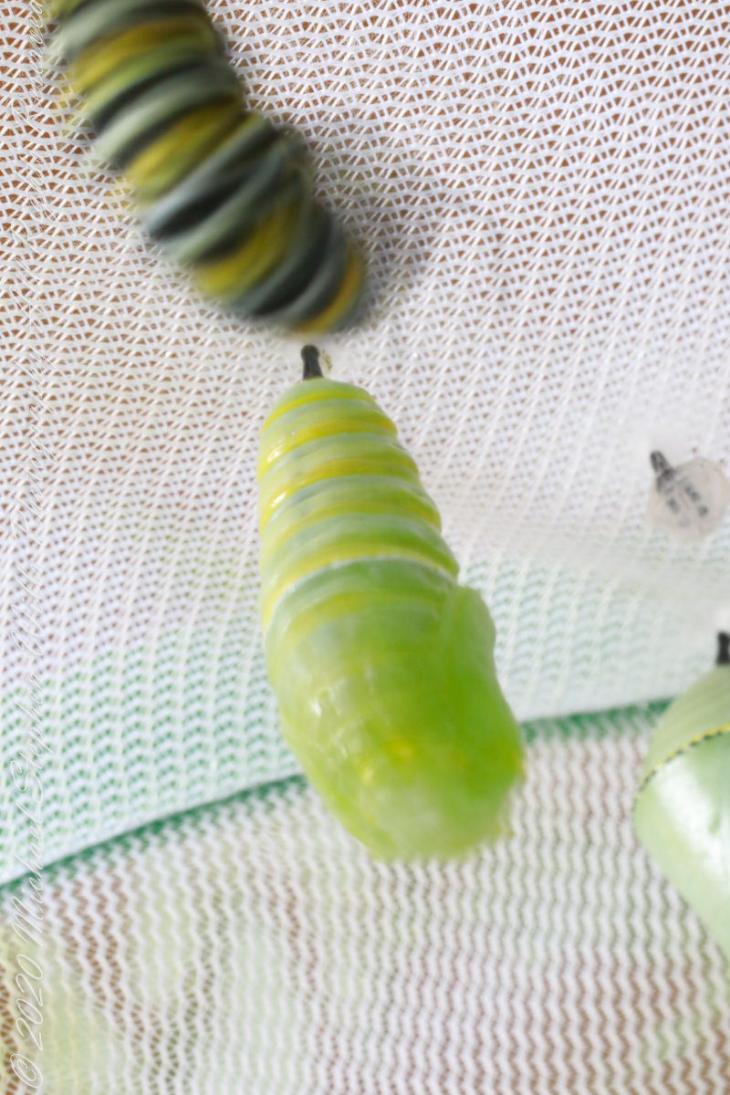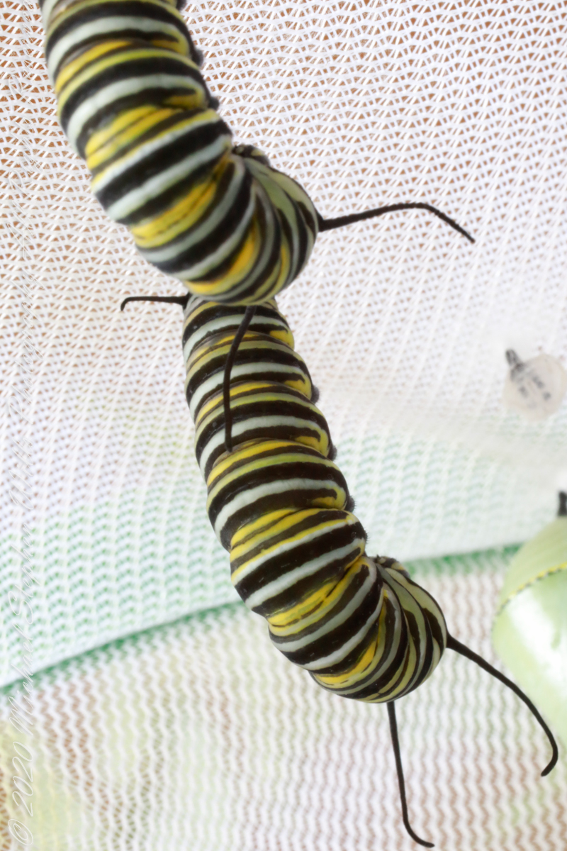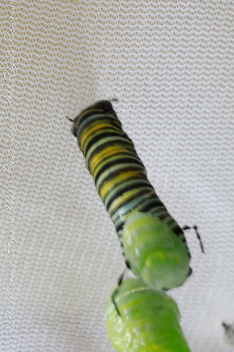 At last a hush. A final meal, a purposeful wander. The caterpillar chooses a high eave of the world—a stem, a stick, the corner of your rearing tent—and hooks itself into a downward J. Within hours the skin splits like a soft zipper; the striped creature pours itself out of itself and seals into a smooth chrysalis.