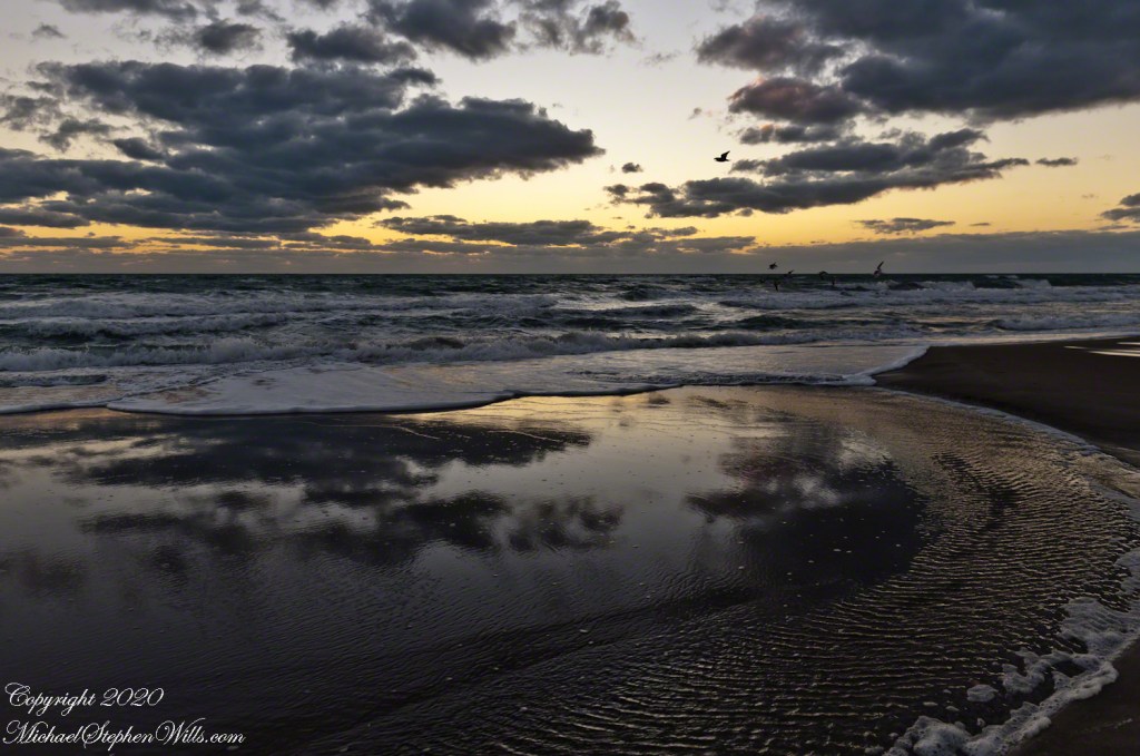 A Willet feeds in the new day. This is a species sandpipers, a cousin of the Sanderling of yesterday’s post.