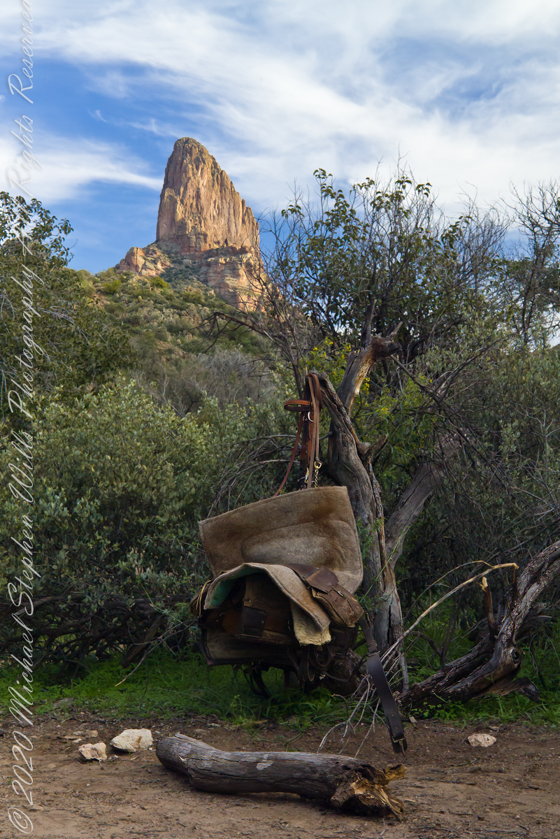 Our second day began in East Boulder Canyon, in the following map it is at the foot of the “Z” of the orange line, the Dutchman Trail, lower left center. The shape is the signature of a switchback needed to negotiate a steep slope up to Upper Black Top Mesa pass. This day will see us traverse Dutchman Trail to the intersection with Peter’s Trail (yellow), another steep climb up Peter’s Mesa.