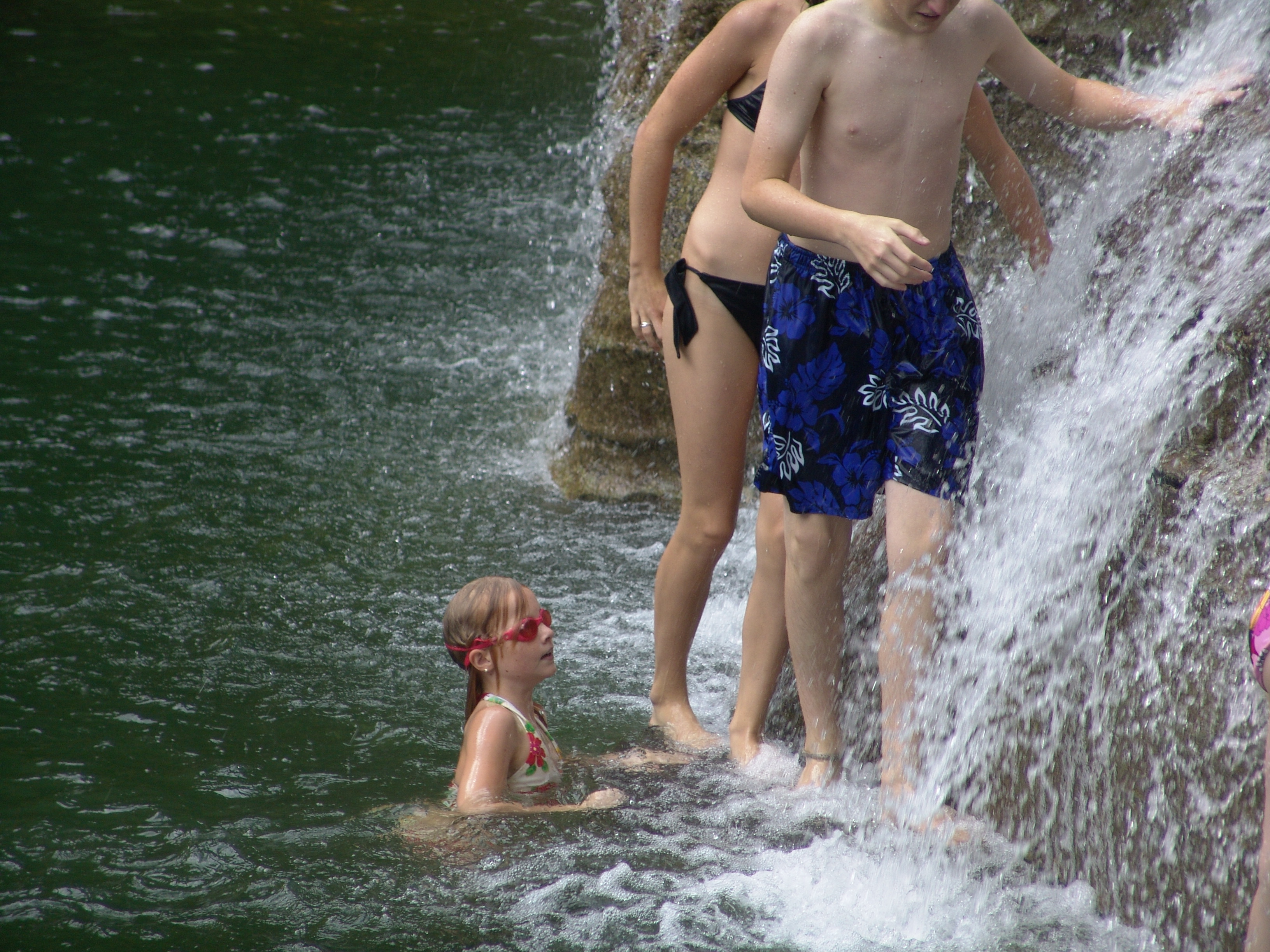 “Plunge pools are fluvial features of erosion which occur in the youthful stage of river development, characterized by steeper gradients and faster water flows. Where softer or fractured rock has been eroded back to a knickpoint, water continues to bombard its base. Because this rock is often less resistant than overlying strata, the water from the higher elevation continues eroding downward until an equilibrium is achieved.”