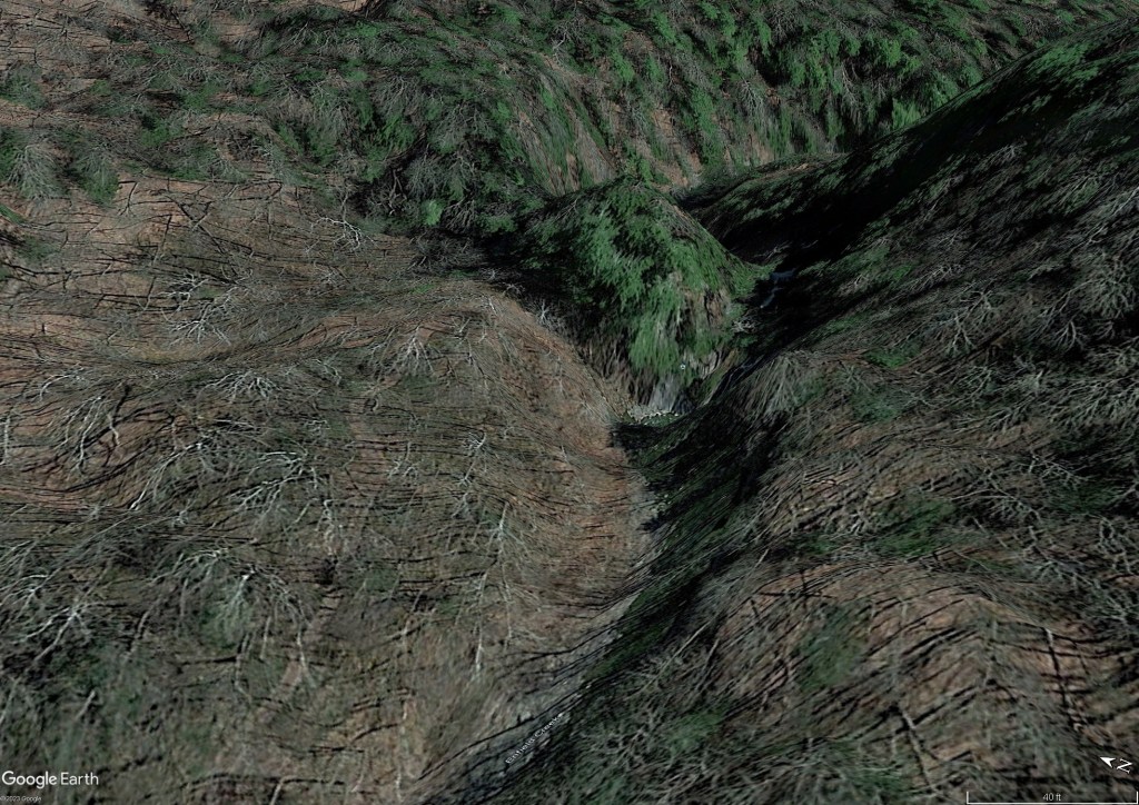 Eventually the former stream bed intersects with a work road sloping back down to the Gorge Trail. It was here I found the oak apple gall of yesterday’s posting.