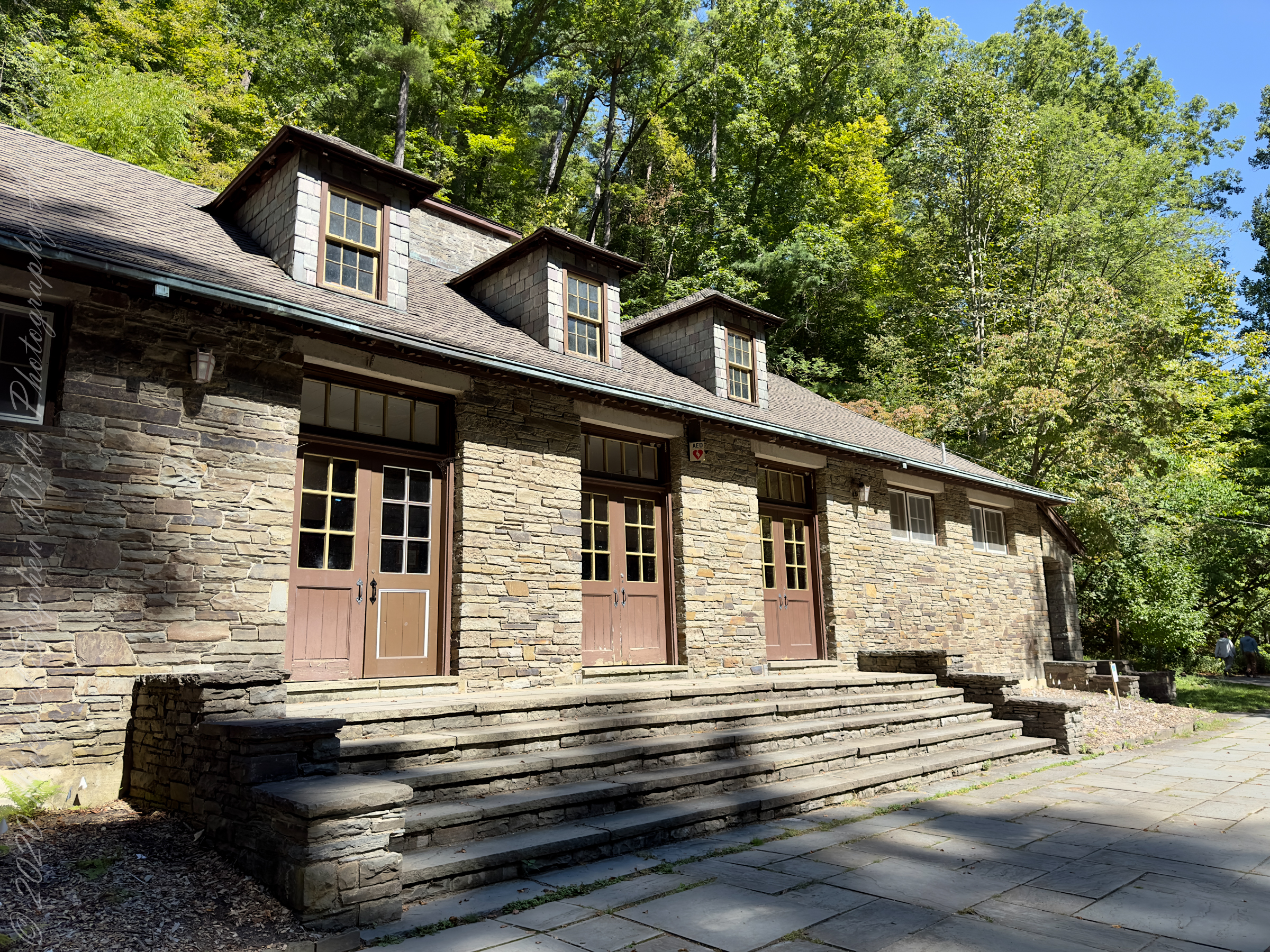 A palatial bathhouse built by the Civilian Conservation Corps, “For the people, by the people.”