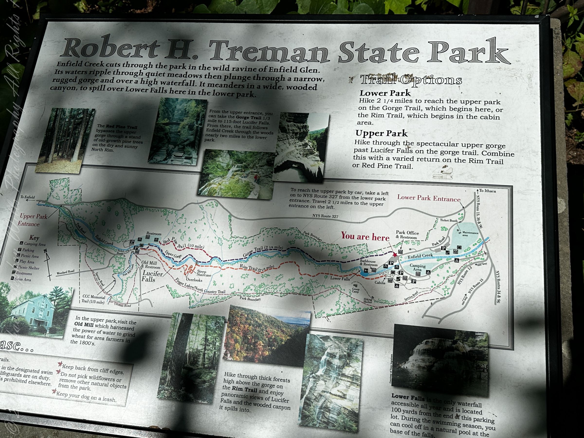 Today I walked the Gorge Trail to below Lucifer Falls, crossed the bridge and returned via the South Rim Trail, a trip of over 5 miles according to the Apple IPhone 14 Pro Max used for these photographs.