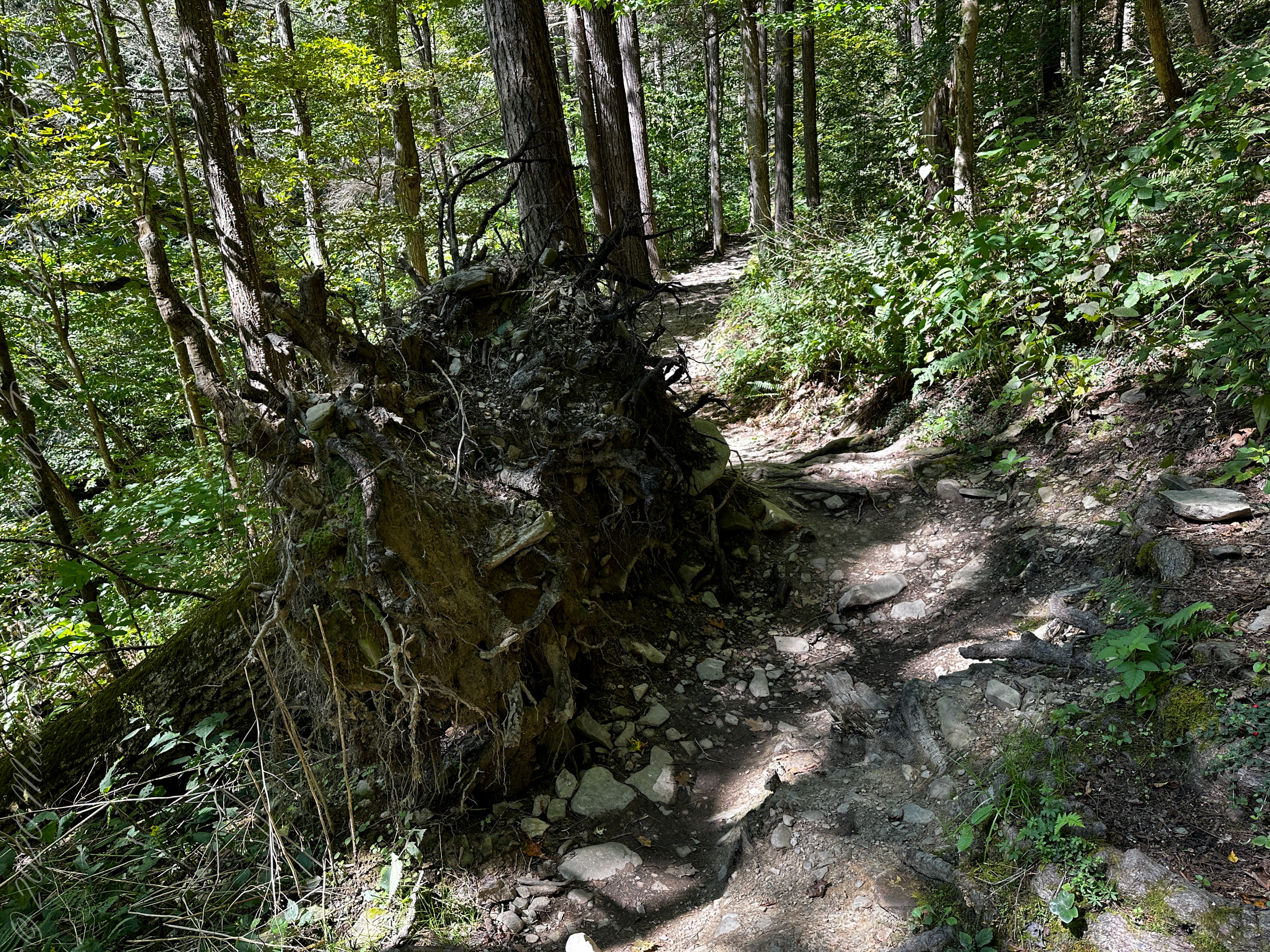 An unnamed waterfall along the Gorge Trail is memorable for the steps alongside.