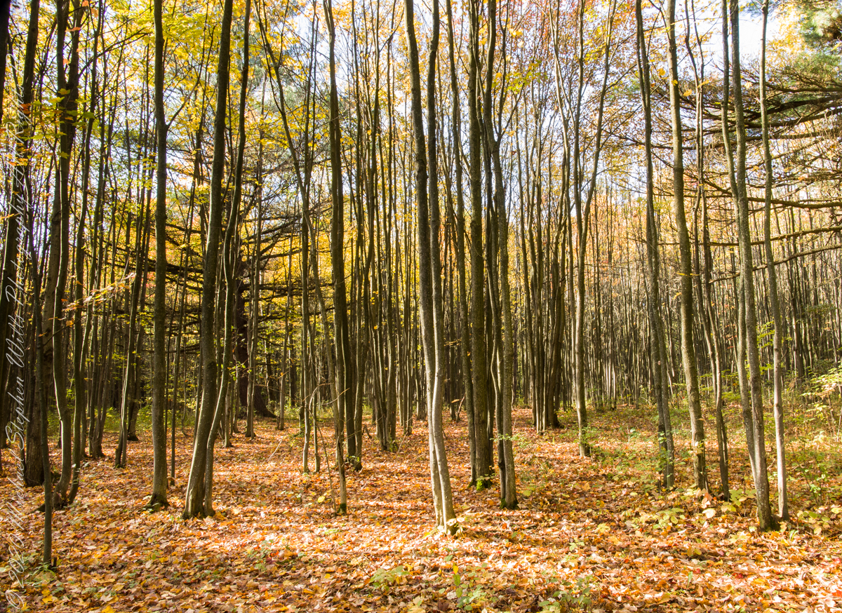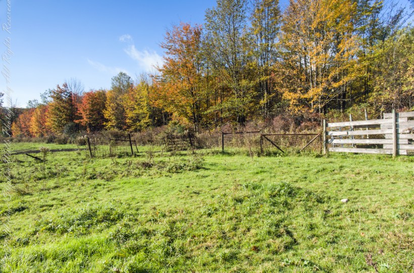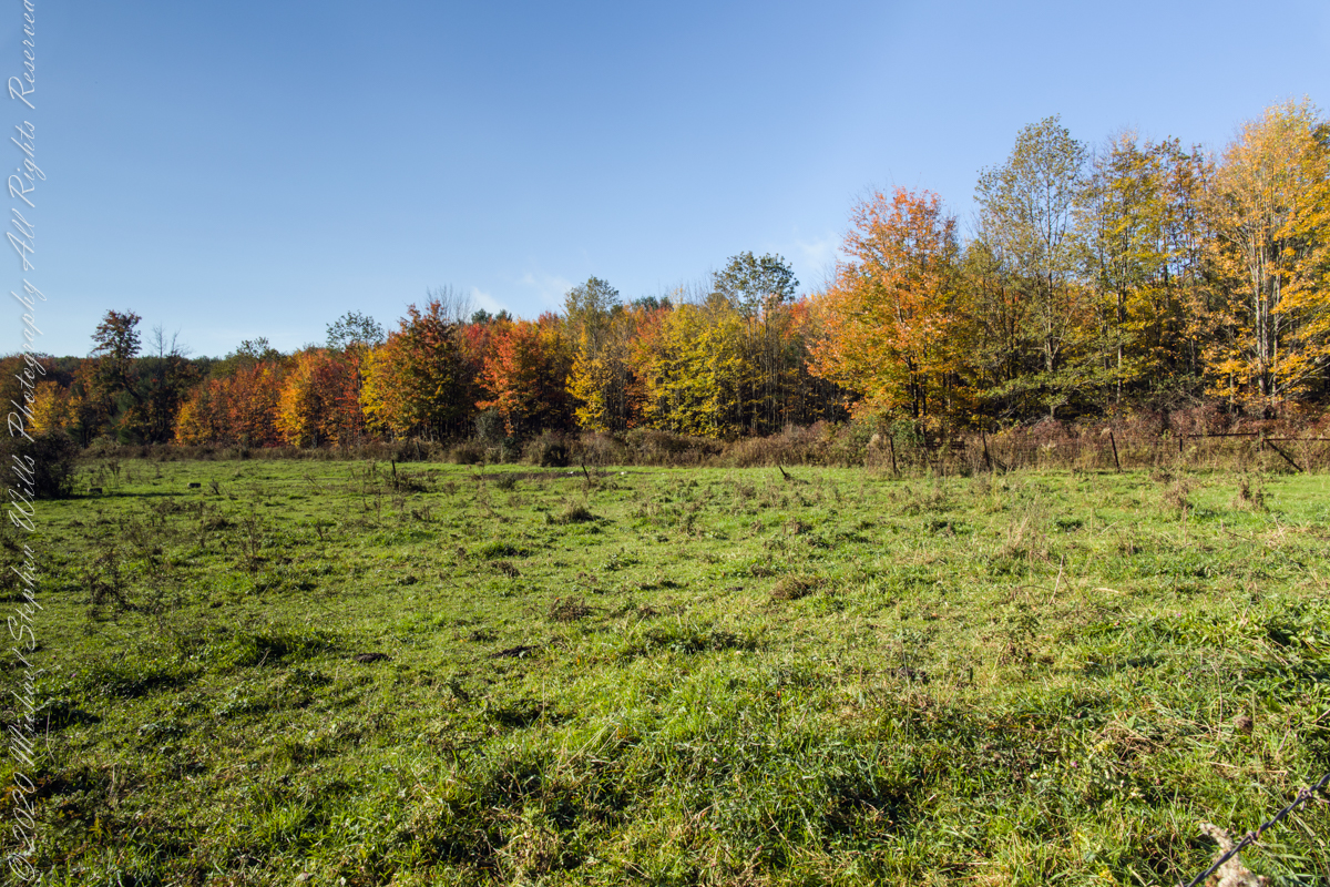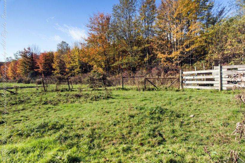 An abandoned church converted to Community Center is the distant steeple, marking the hamlet of Logan. I played a bit with the vista, moving forward and across, forgoing temptation to bring the autumn foliage front and center as this was private pasture, was 50 feet in as it was.