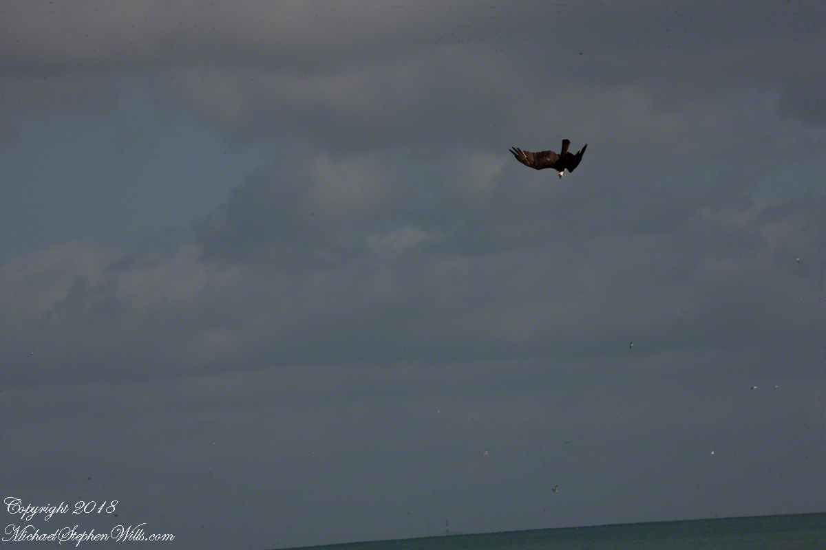 Beyond the pilot boat, shorebirds fly in rhythmic formation, a sight both familiar and comforting. Using the zoom (300mm) of my variable zoom lens, I identify these birds as pelicans, their elegant, synchronized flight a mesmerizing display against the vast expanse of water.