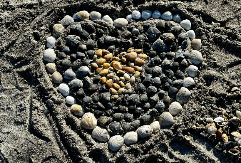 On the last day of 2023, as the sun began its descent on Cocoa Beach, I found myself tracing the contours of a heart laid out in Ark Clam shells. Each shell, with its ridges and grooves, felt like a chronicle of the ocean’s whispers. This artful mosaic, set against the granular canvas of the beach, was a testament to the playful hands of time and tide. I marveled at the intention behind it, the human desire to create and connect, to leave a mark, however fleeting, on the vastness of nature.