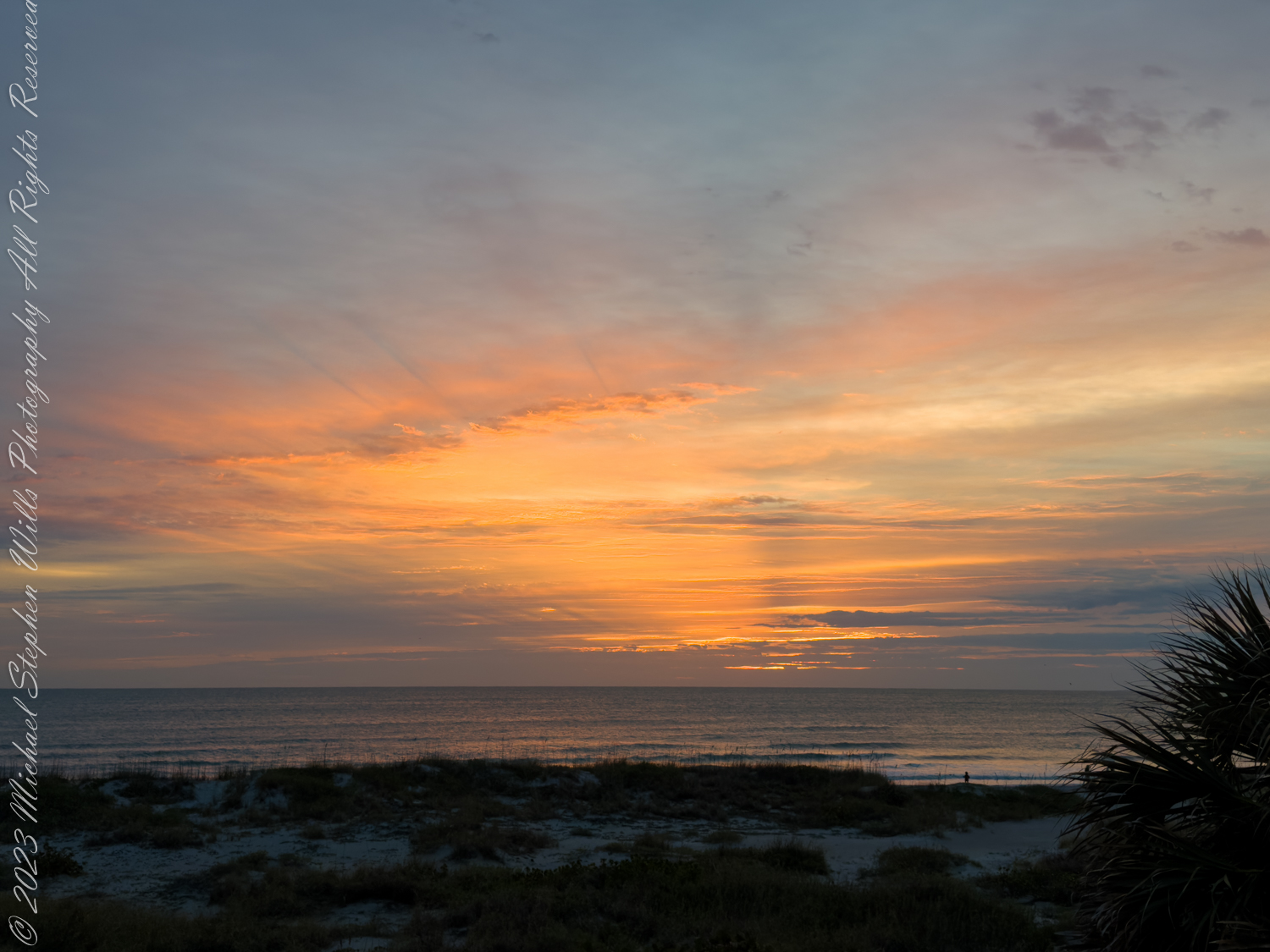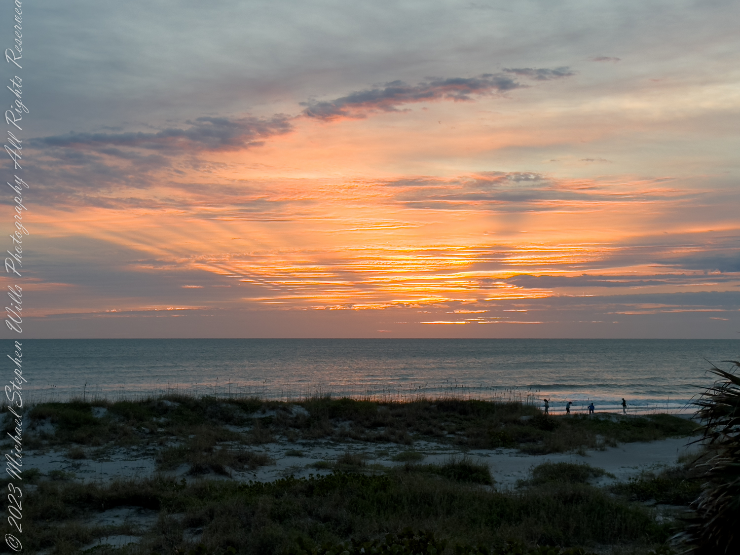 Awake to the radiant grace of dawn, where golden light adorns the sky and the ocean reflects its splendor. Witness the serene dance of nature in a peaceful, inspiring January sunrise at Cocoa Beach.