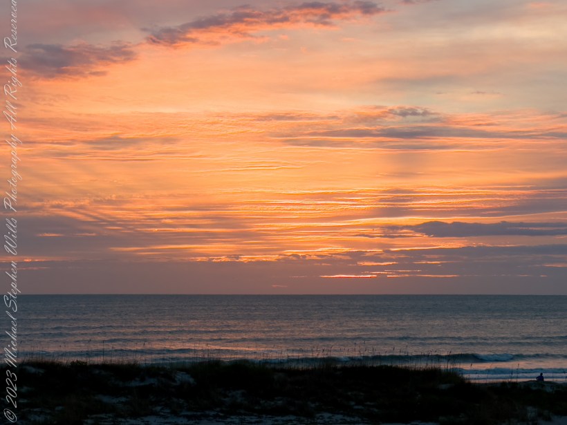On distant sands, the footprints of the few mark early risers greeting morning’s hue. Their presence, fleeting, soon to be erased, by tides that sweep the shore in gentle haste.