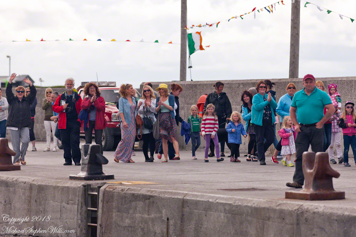 The team on Monday, June 2, the day of our trip, was on Inis Meáin, in celebration mode. Some of them were waiting for the ferry when we pulled into the dock of Inis Meáin, the second largest Aran island between the other two.