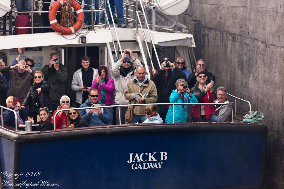 The first of the previous three photographs is of the waiting team members who boarded and we left for Inisheer Island, the smallest of the three and the closest to Galway City. The Queen of Aran was well out of the harbor when I imagine the radio in the pilot house said, “Come back, there are more team members on the dock.” So we turned around, docked and several more came on board.