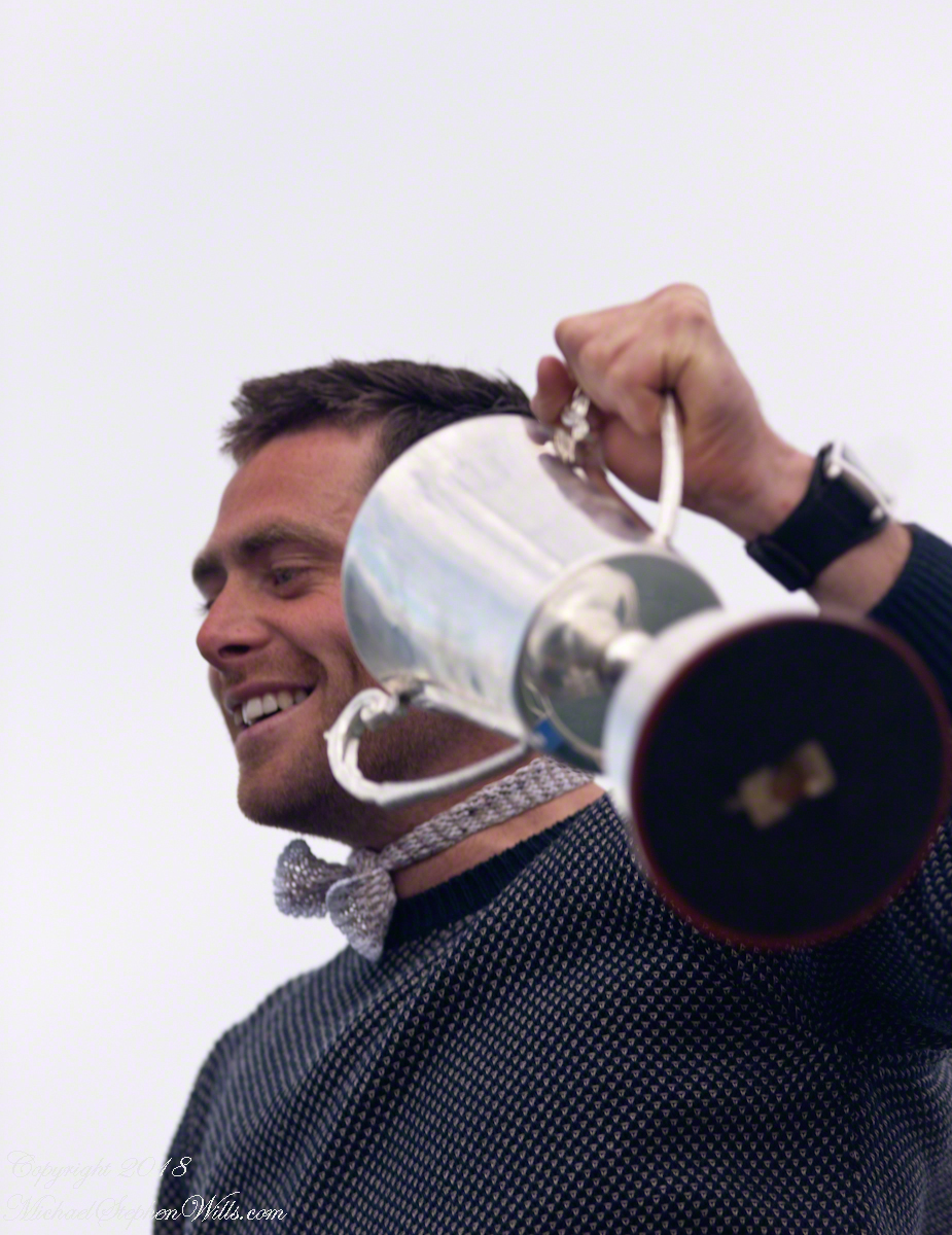 The team was on the upper ferry deck. I turned around and was lucky enough to capture the team captain (Not sure, but who else would it be?) holding the silver cup for all to admire. Theirs for a year.